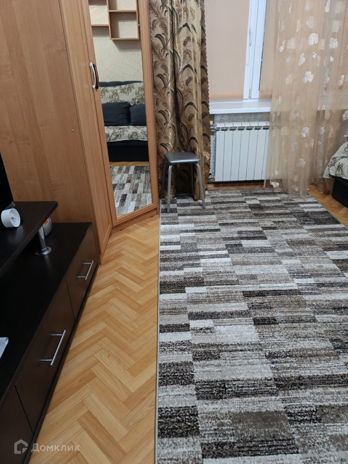 Находится на первом этаже, общая площадь 18.9 КВ.м. сан узел совмещённый. Чистая светлая комната. Остаётся шкаф, кухонный гарнитур и горка под стиральную машинку. Дом после капитального кап ремонта , чистый подъезд, хорошие соседи. Звоните ,  покажу в любое время. Номер объекта: #150/537966/19711