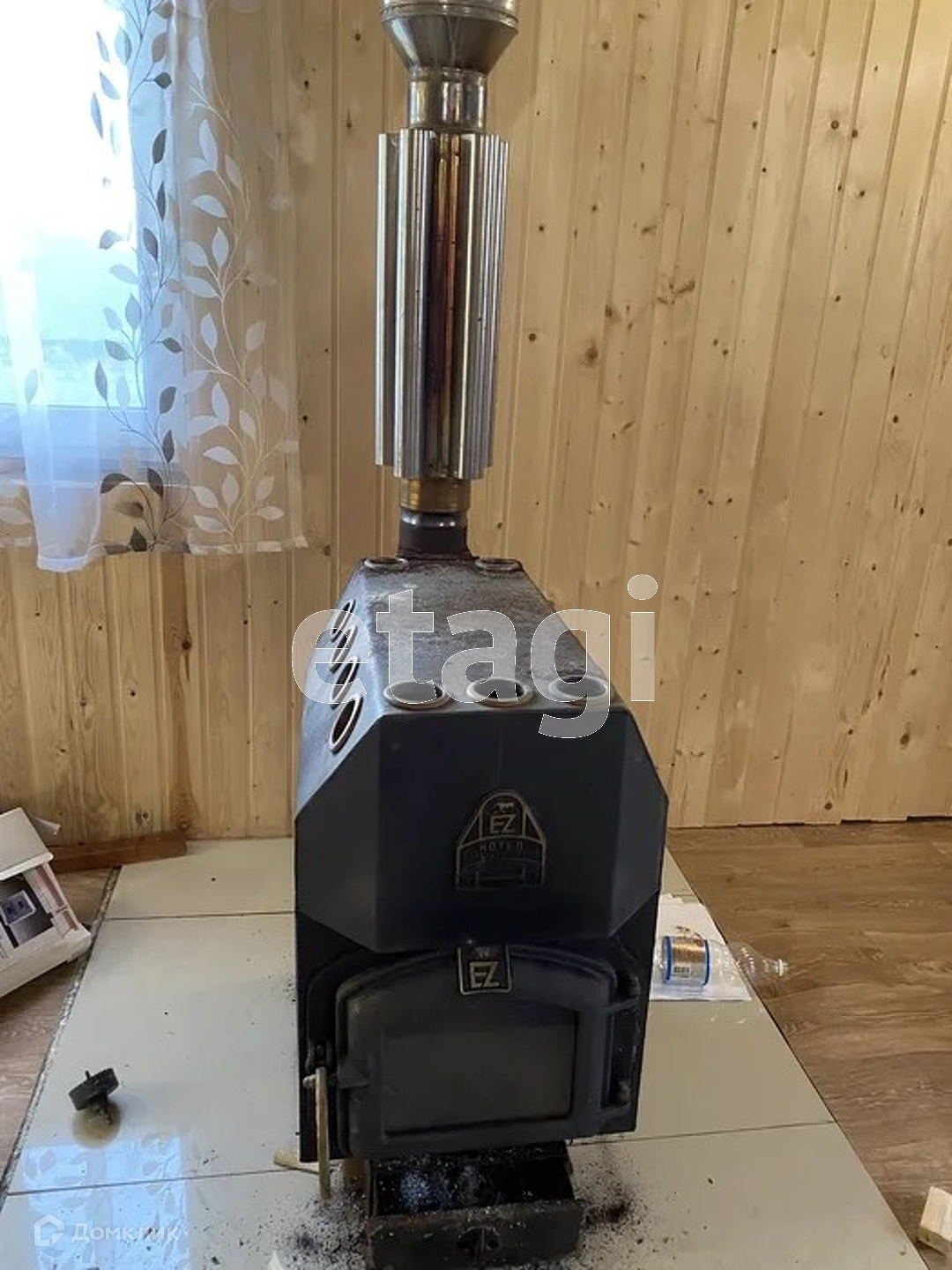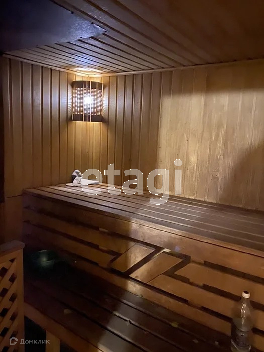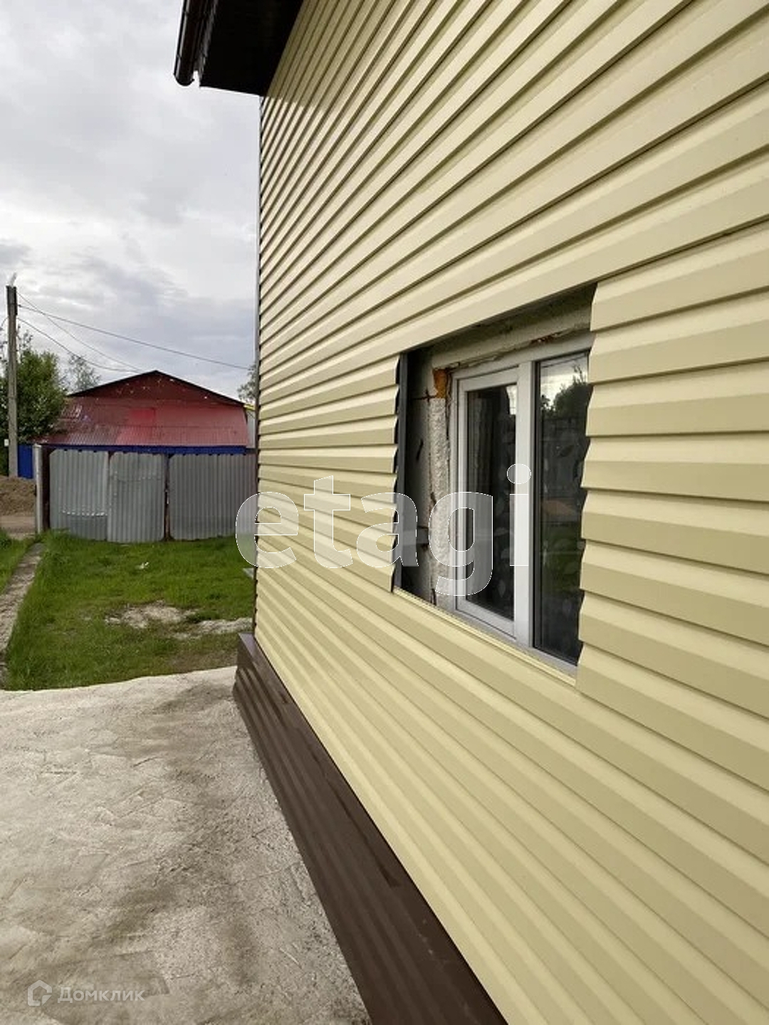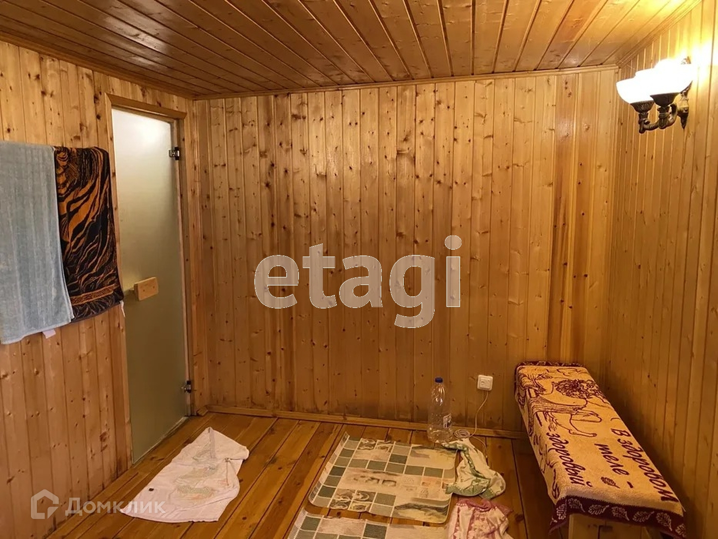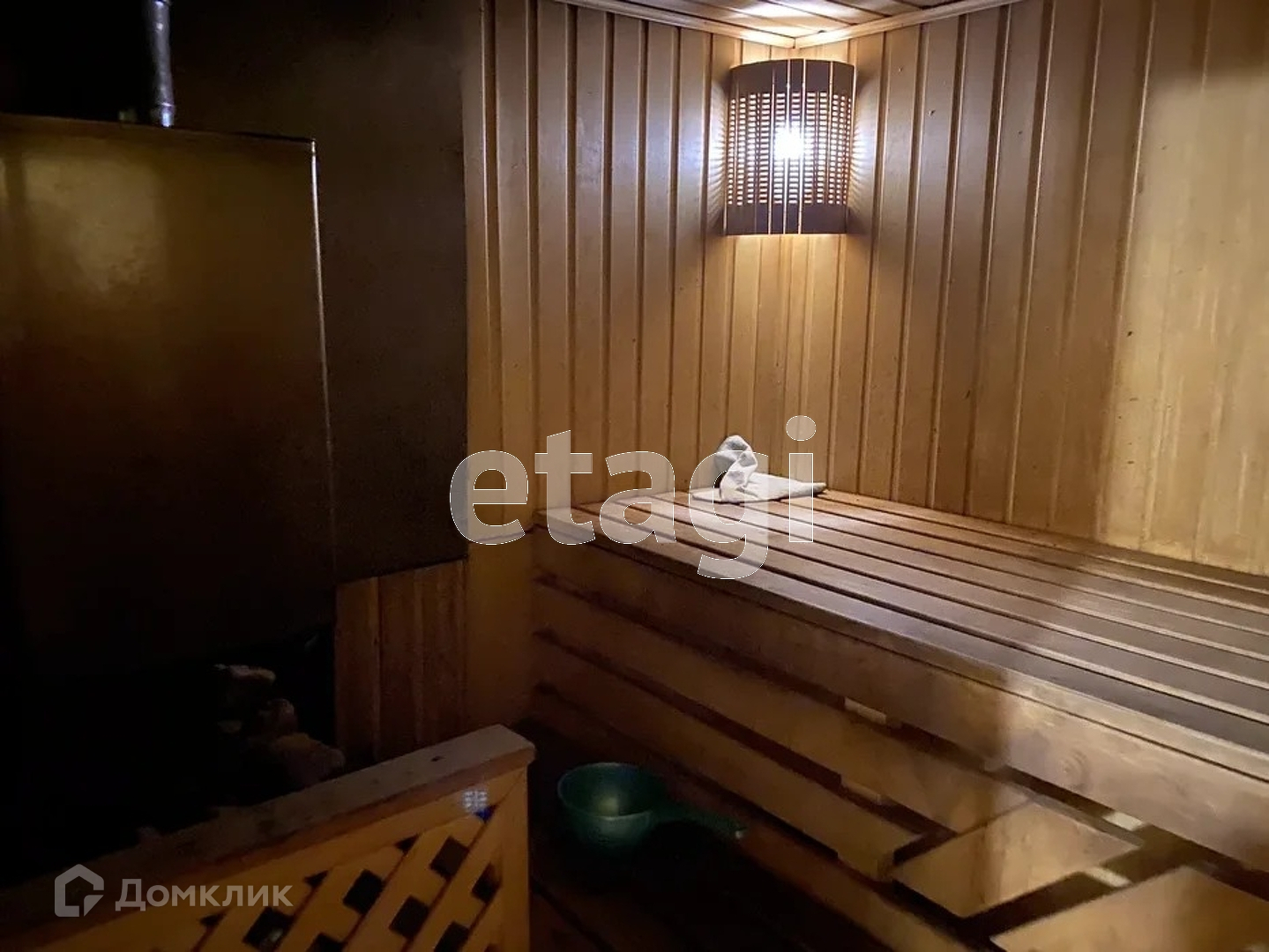 Баня! Она отдельностоящая как постройка. Пол в бане утеплен в комнате отдыха. Постройки обшиты сайдингом, крыша в доме черепицей.