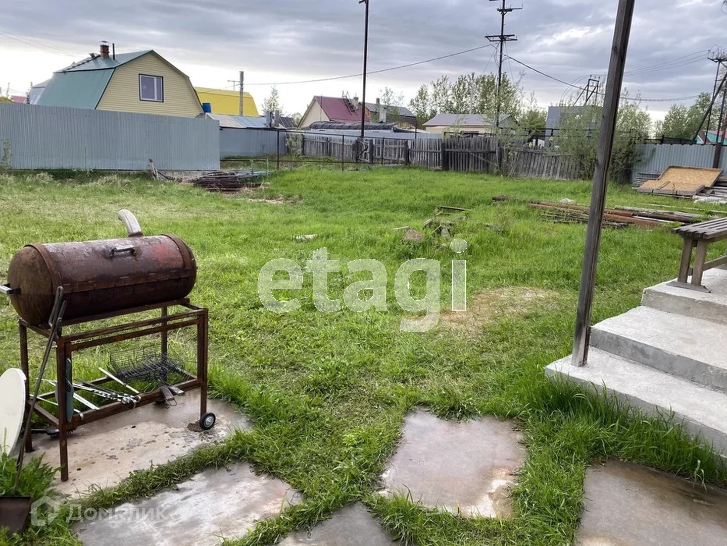 Территория ограждена забором, есть машиноместо, облагорожена рядом парковка. Огорода нет, скошена газонная зональность для барбекю и отдыха на шашлыках.