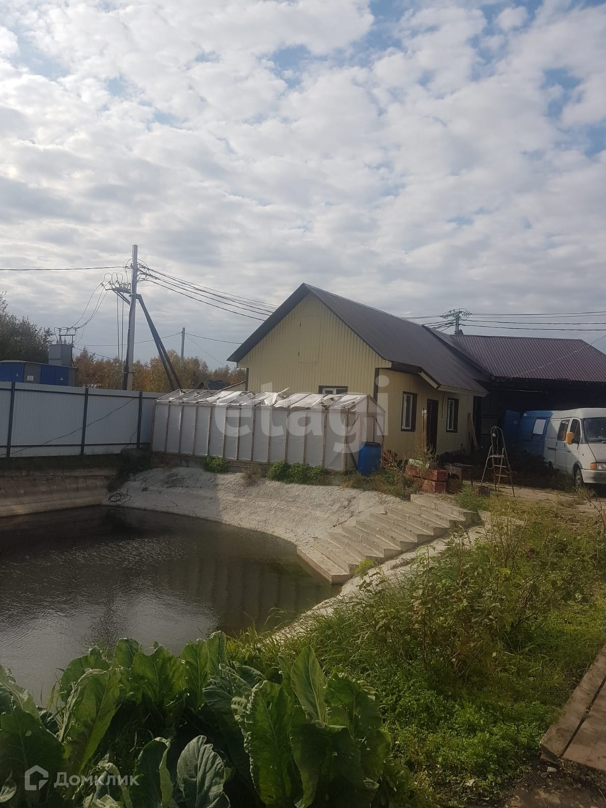 На участке есть собственное озеро с карасями, можно купаться летом.