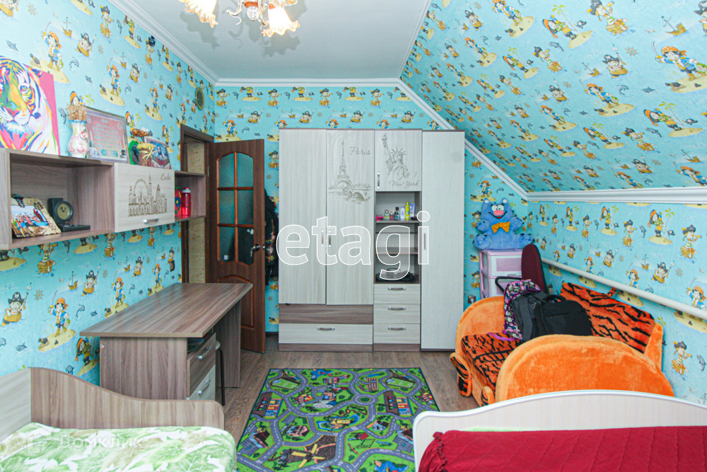 На втором этаже находятся 3 комнаты- 2 детских и одна спальная,лоджия.
