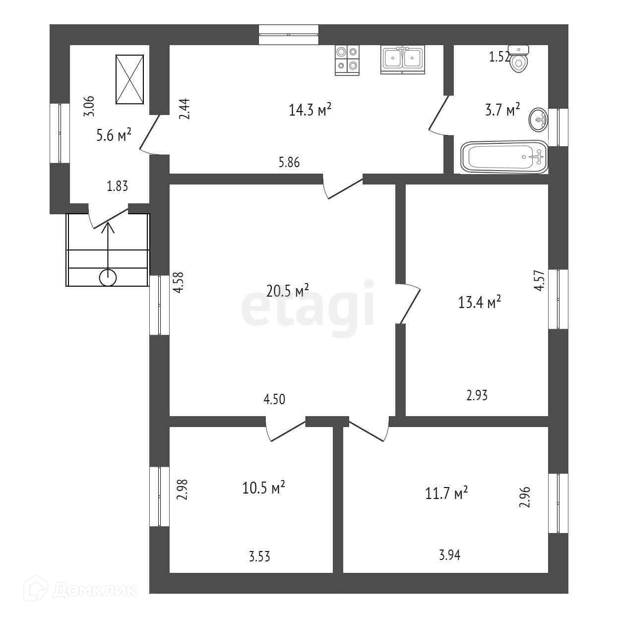 Общая площадь 79.7 м2