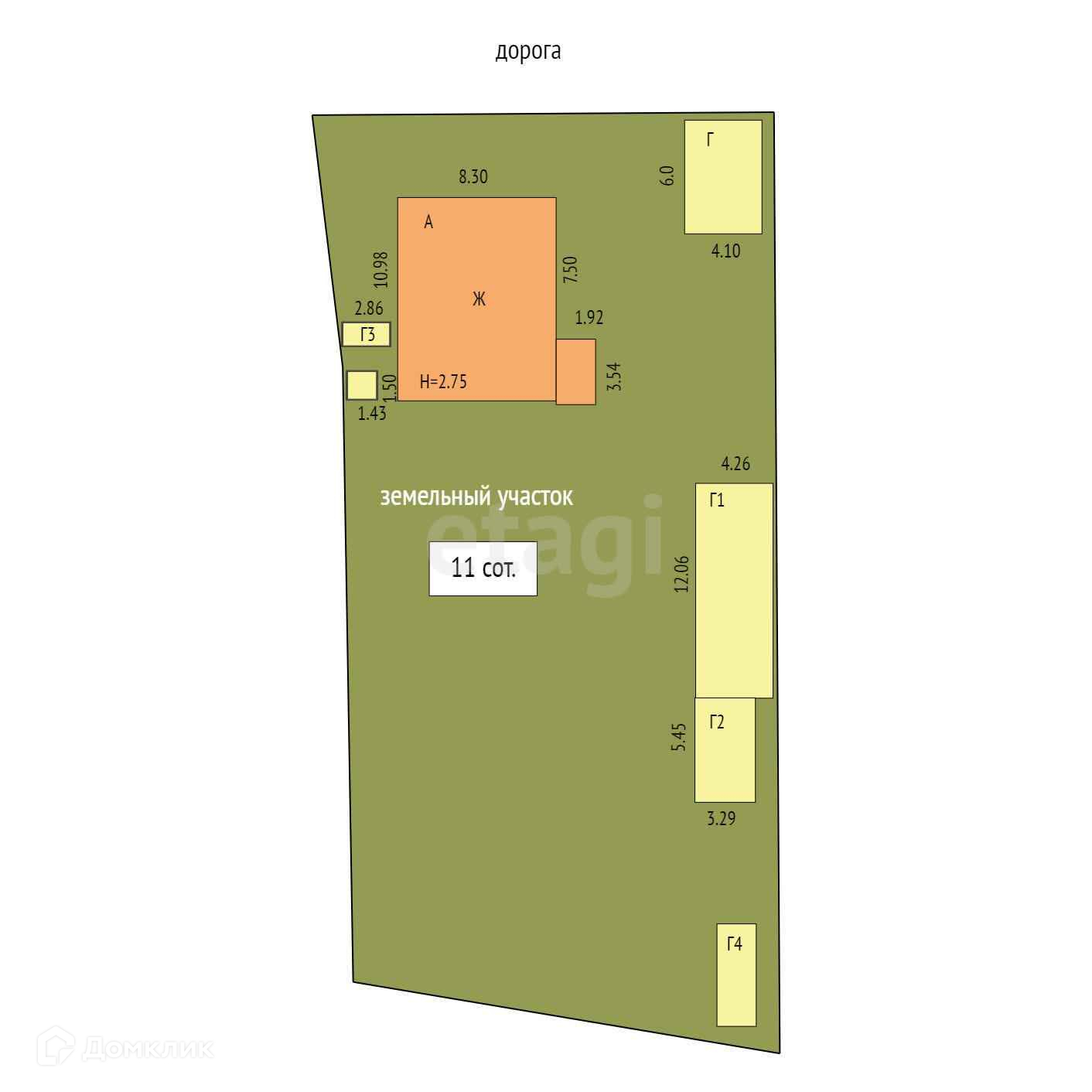 Площадь участка 11 сот.