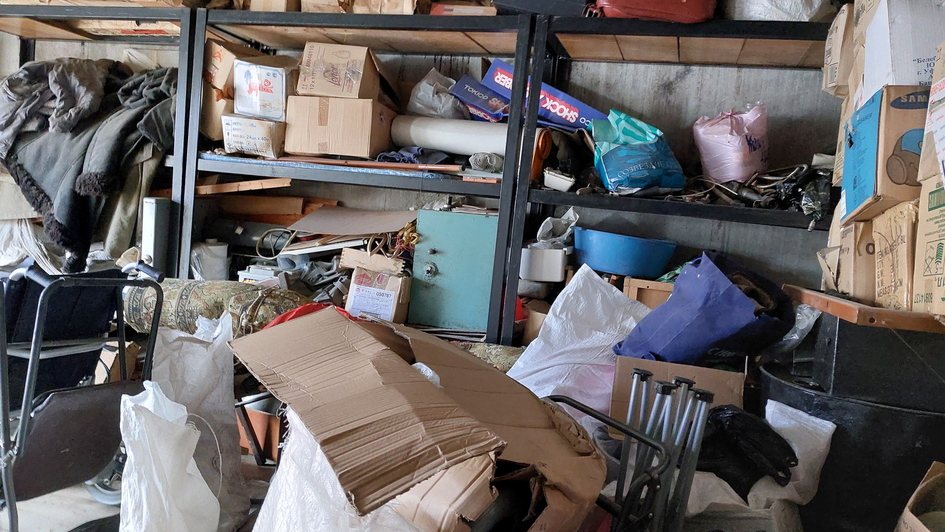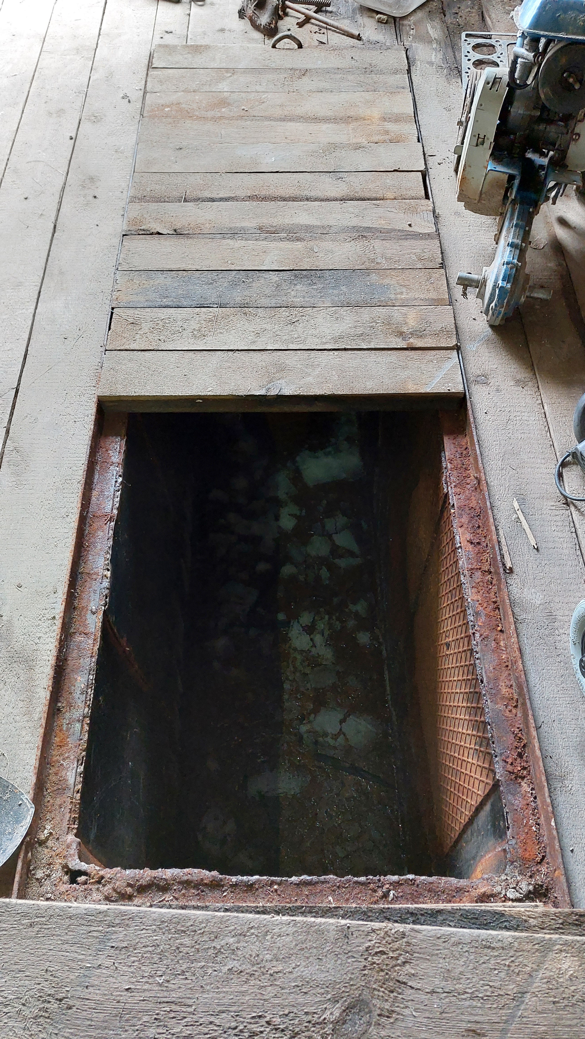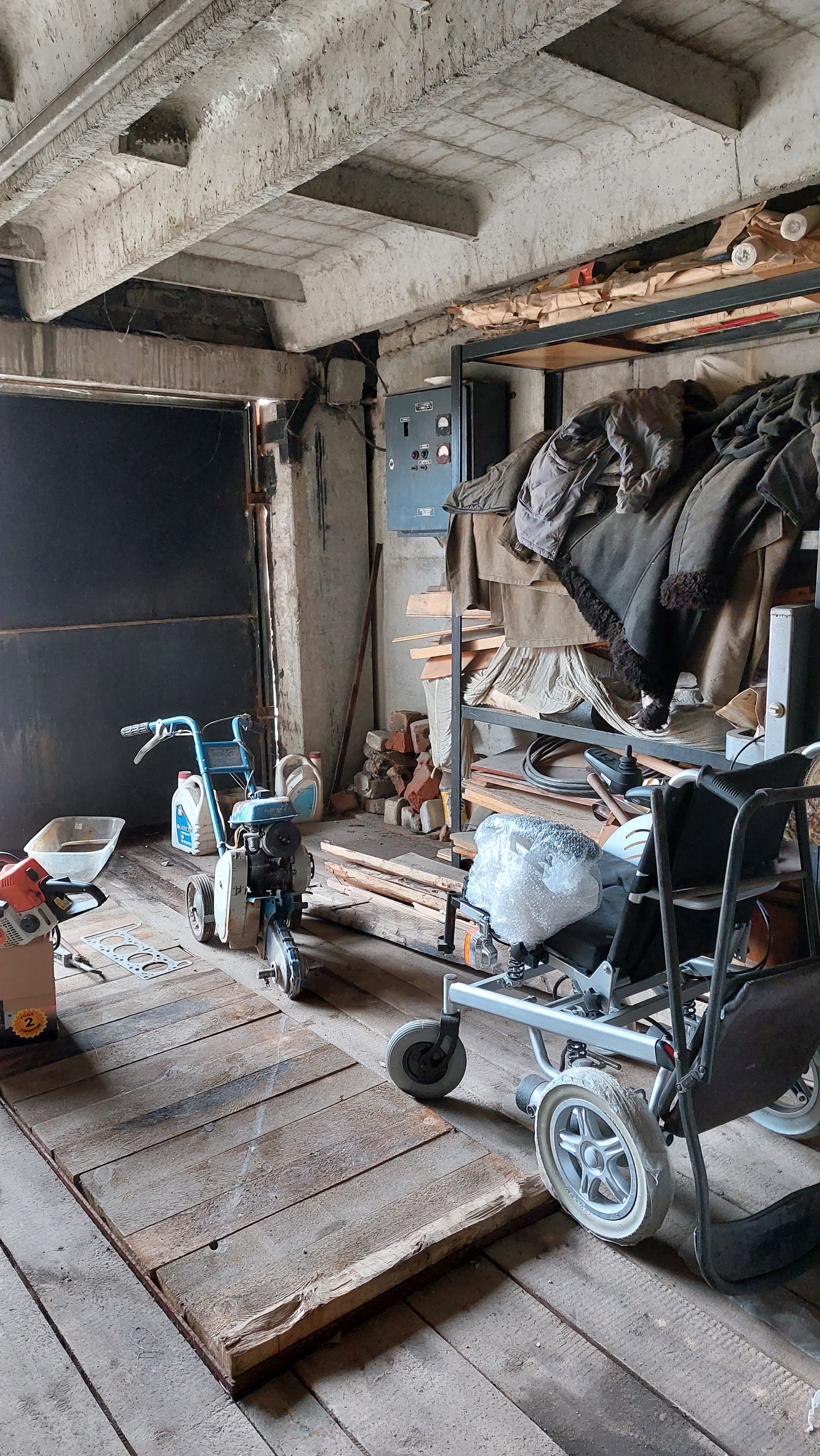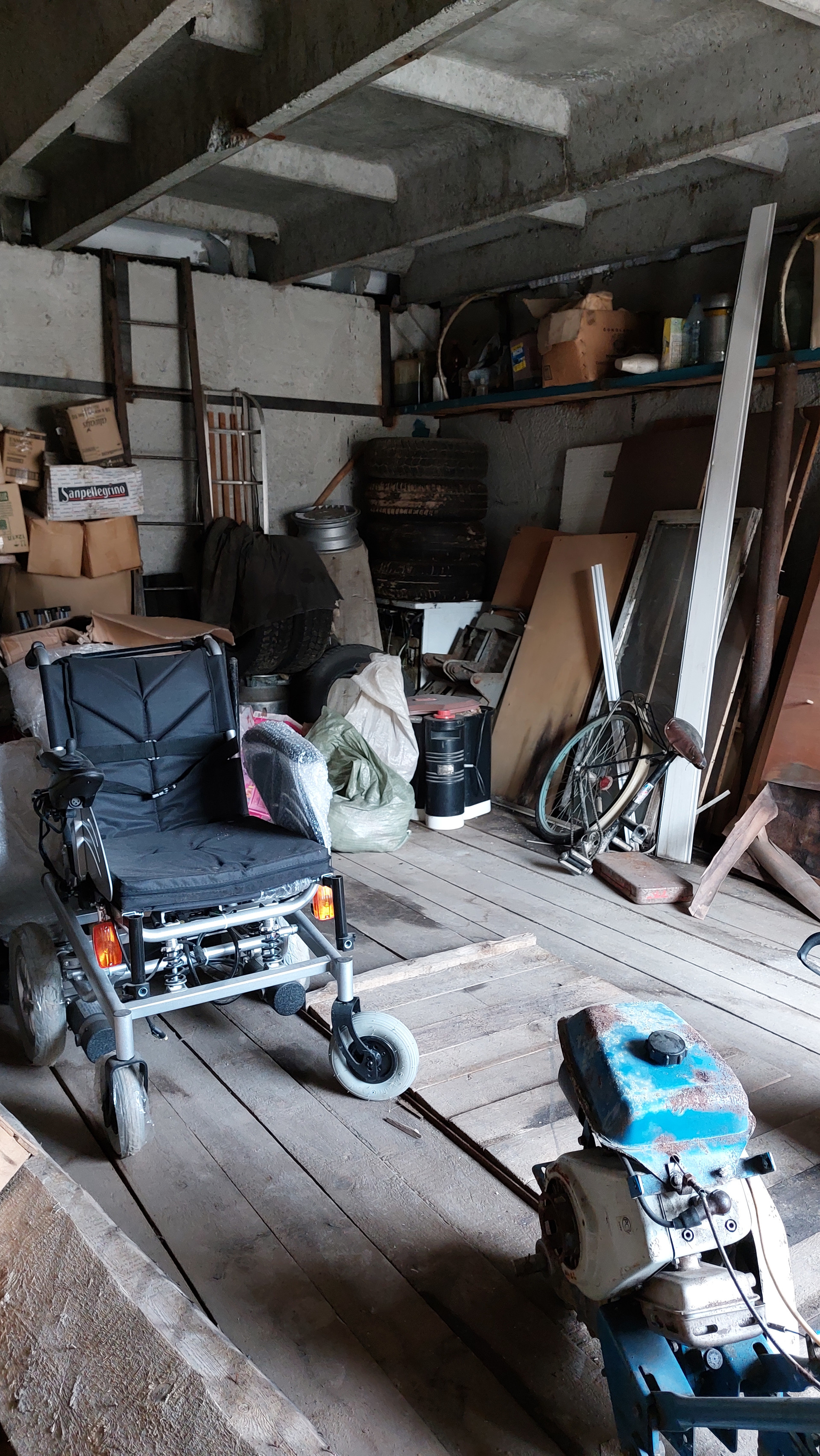 Имеется смотровая яма, стеллажи, слесарный стол, тиски слесарные.