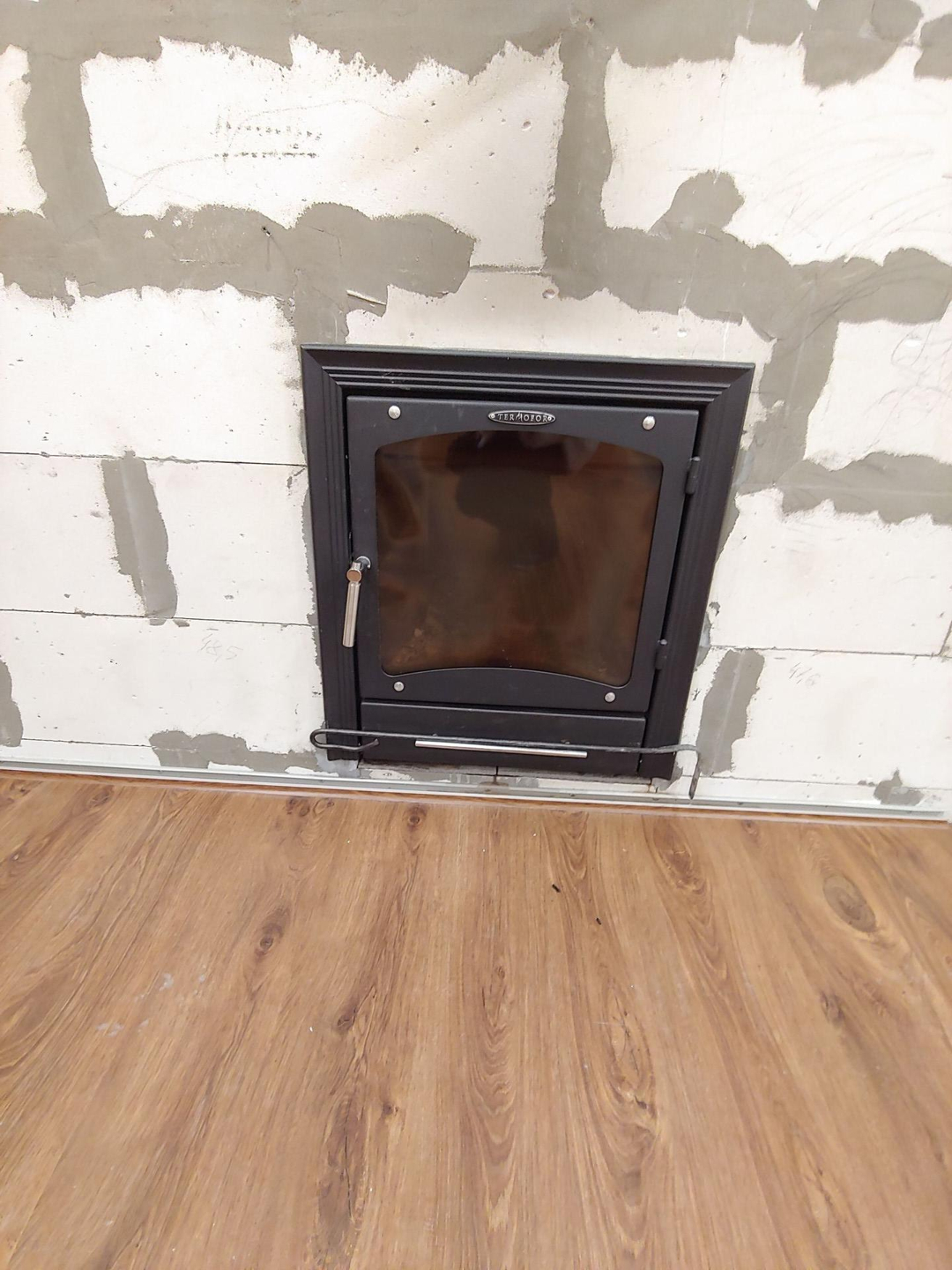 керамогранитом, стеклянная дверь, дровяная
