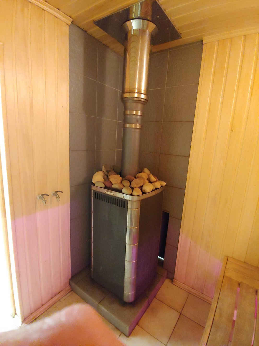 В парилке стены и потолок обшиты вагонкой