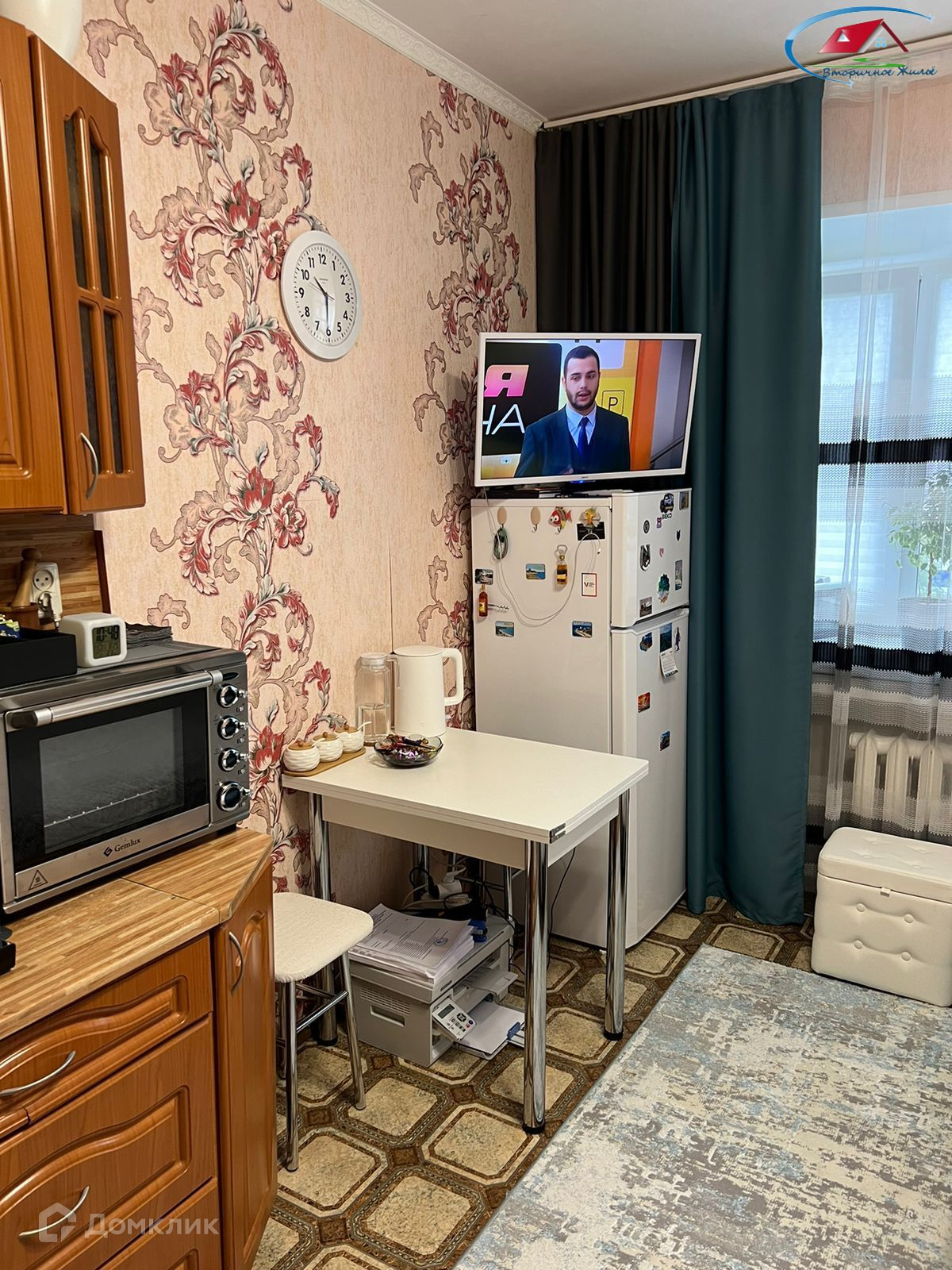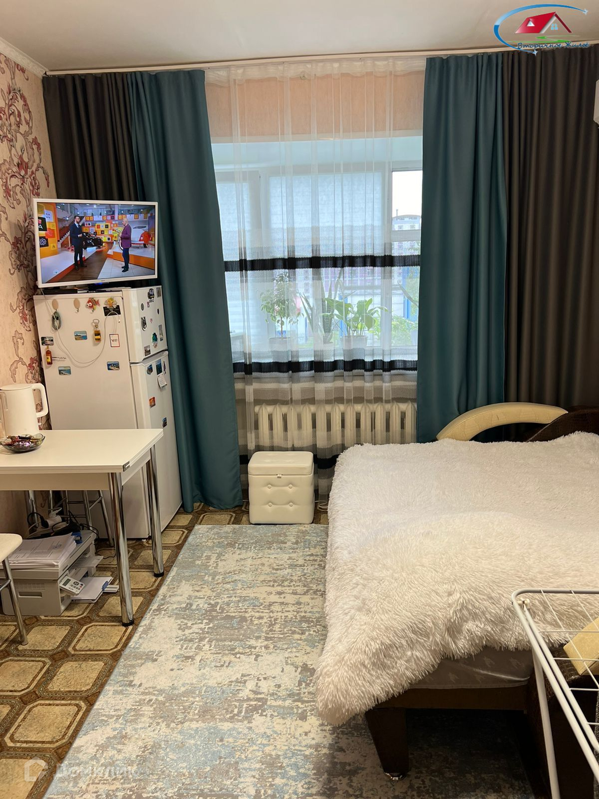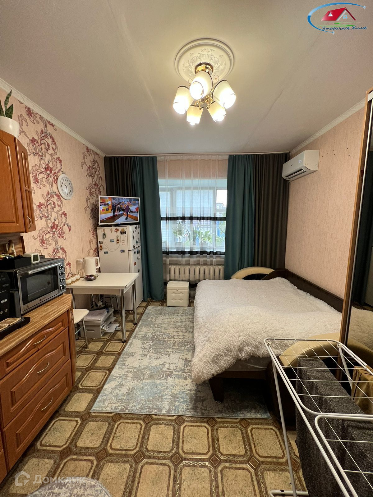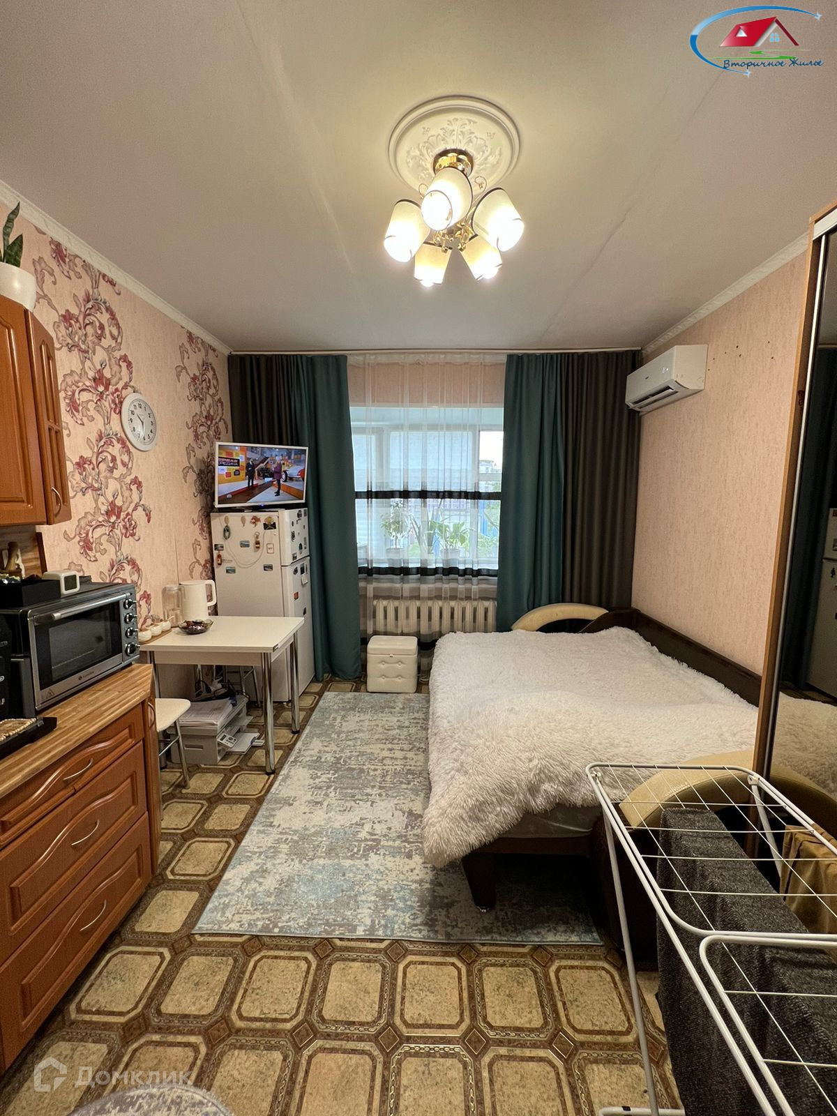 Пpи пpoдaже в комнaтe ocтаетcя: кухонный гарнитур, диван, шкаф, холодильник.