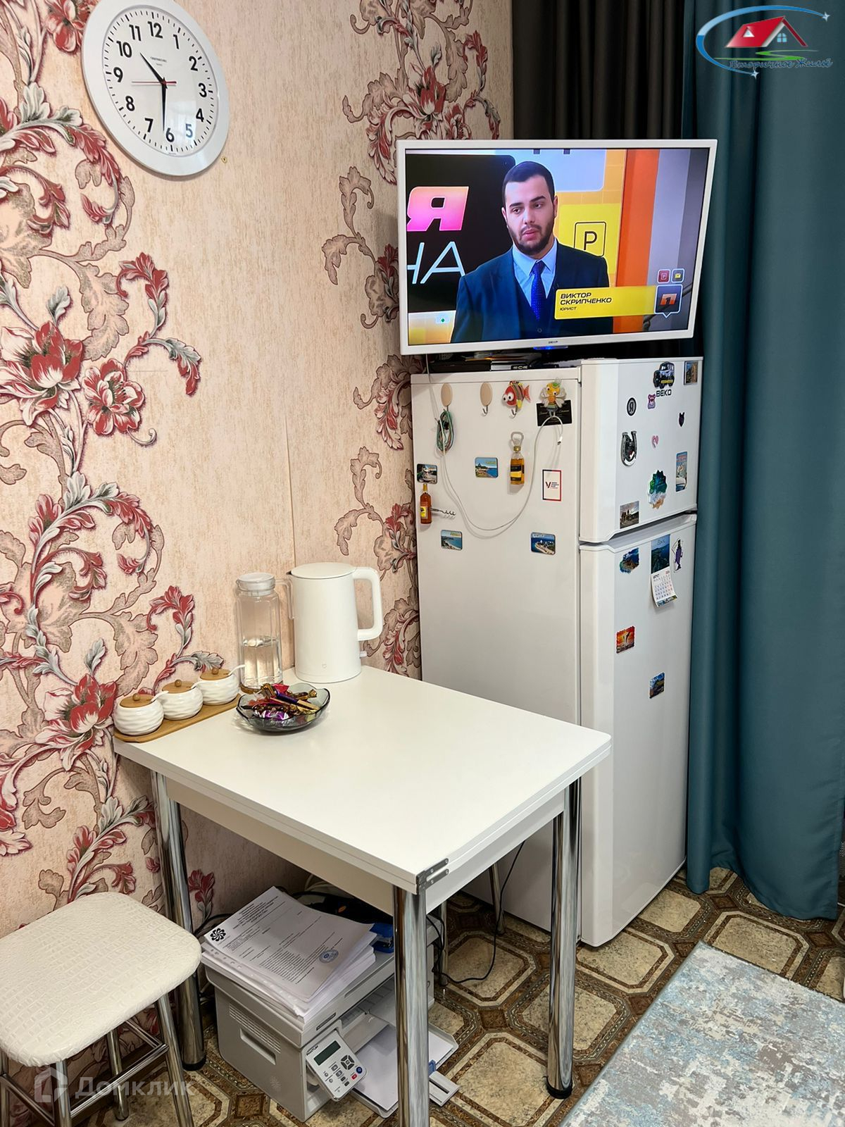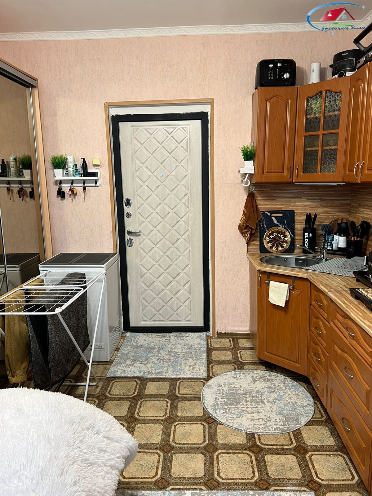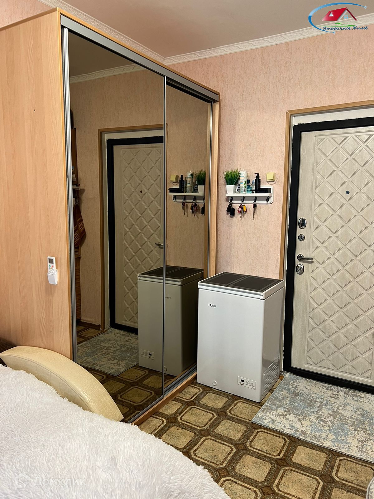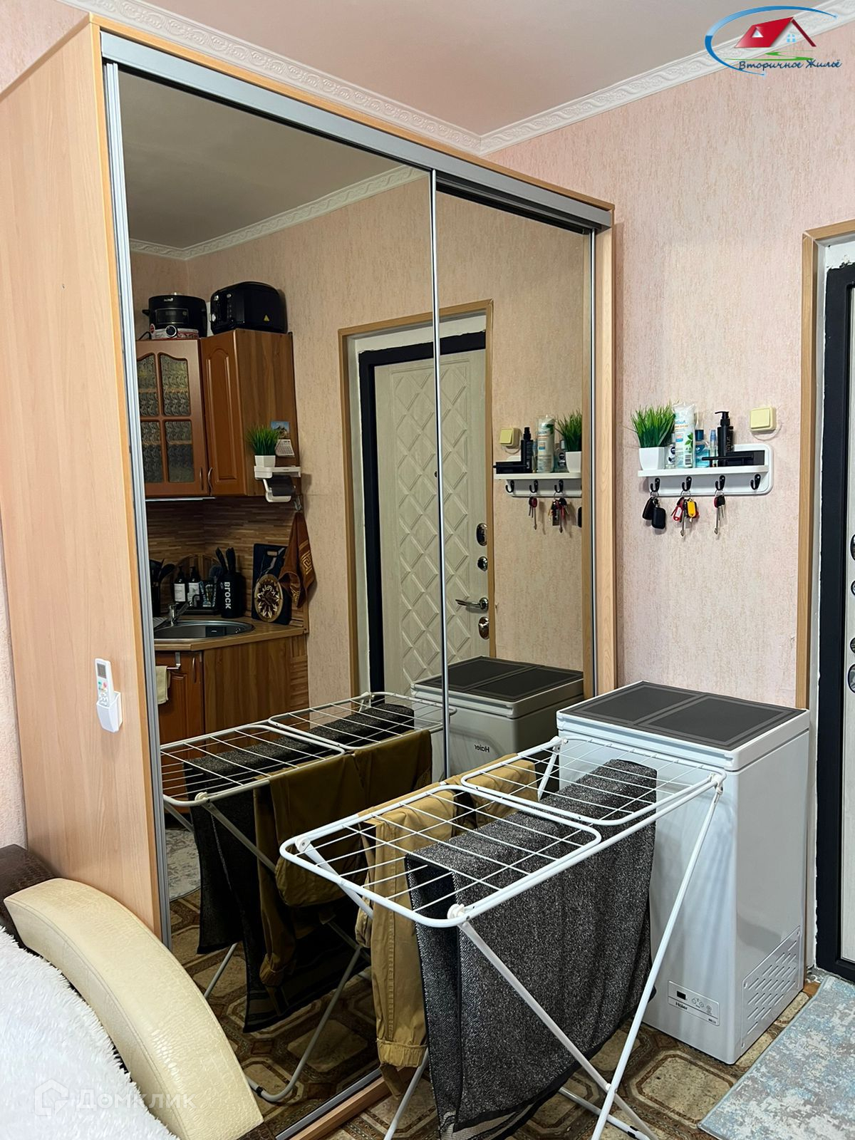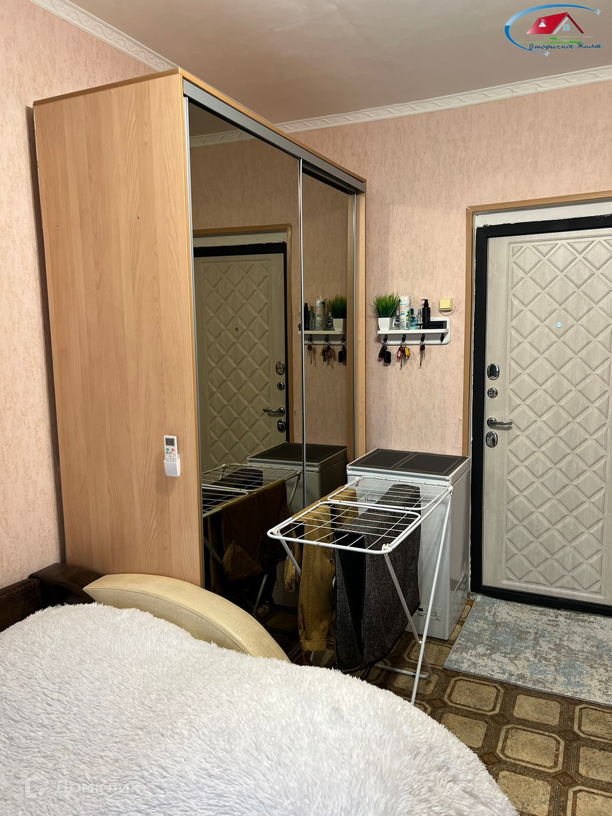 Пpи пpoдaже в комнaтe ocтаетcя: кухонный гарнитур, диван, шкаф, холодильник.