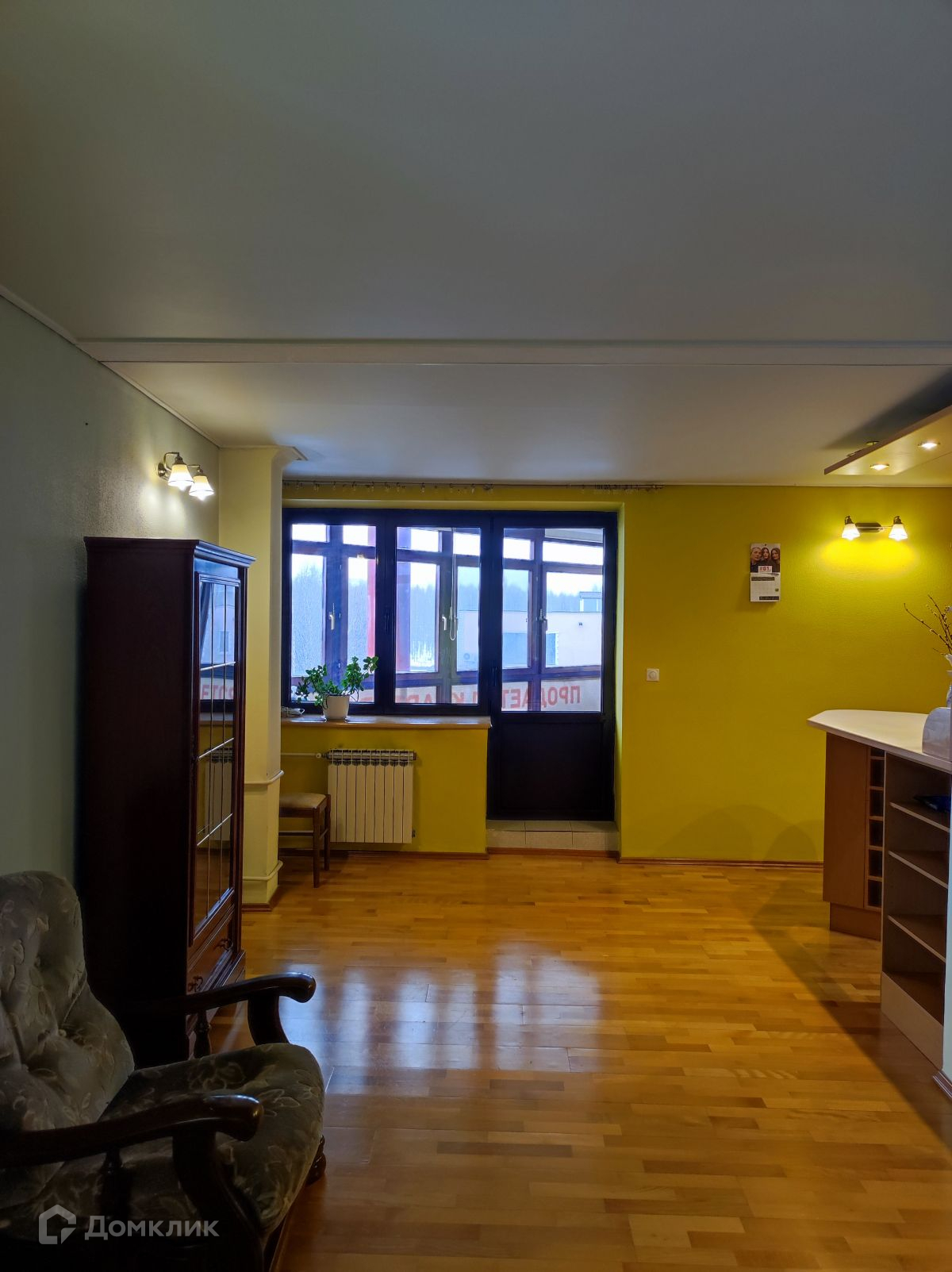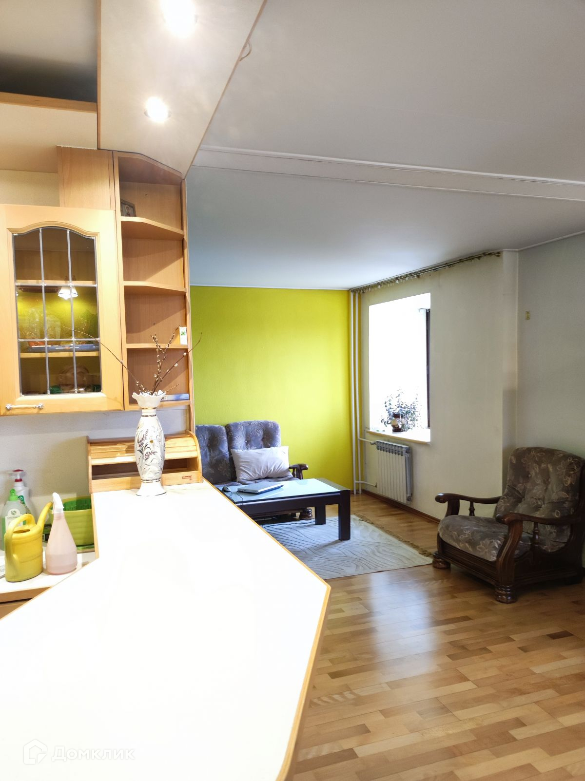 В квартире просторная кухня-гостиная, изолированная комната.