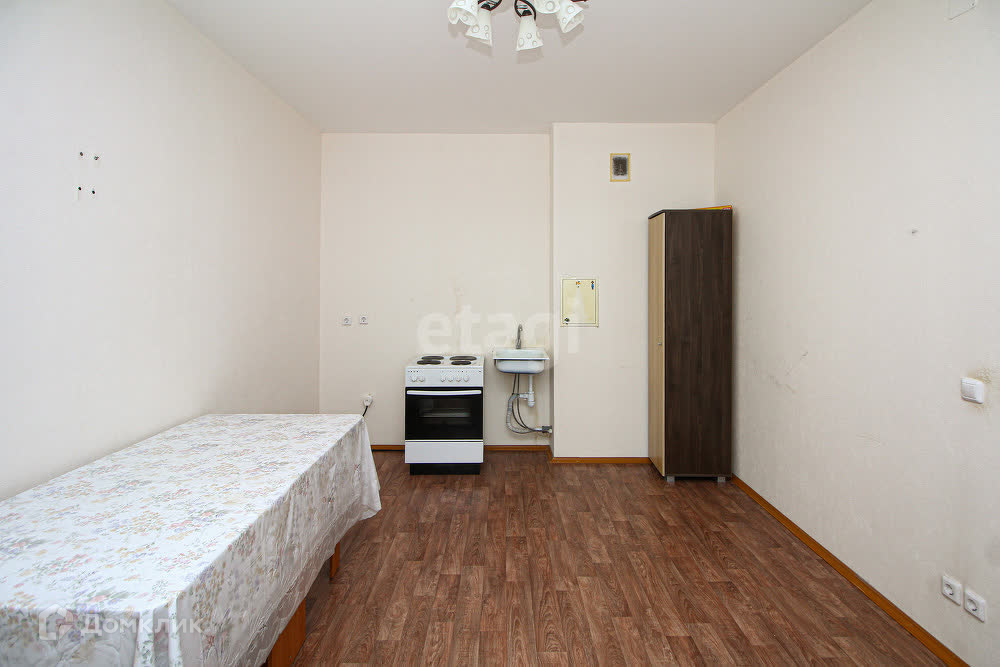 Квартира с ремонтом от застройщика: на полу линолеум, стены выровнены и оклеены обои светлых тонов.