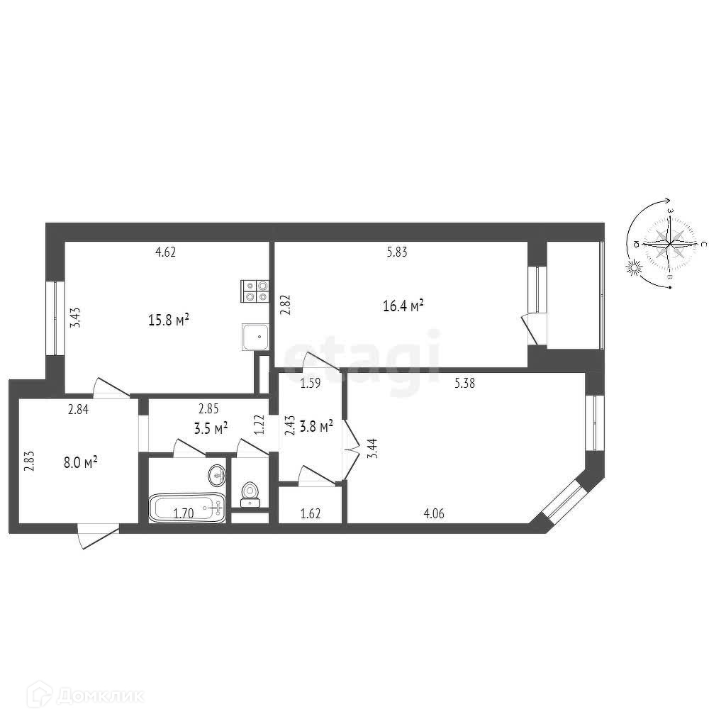 Площадь кухни 15.8 м2