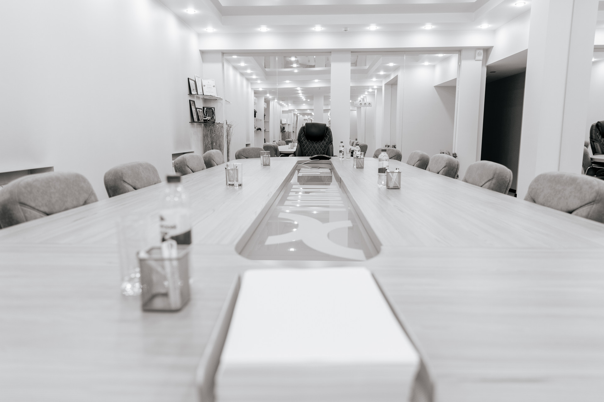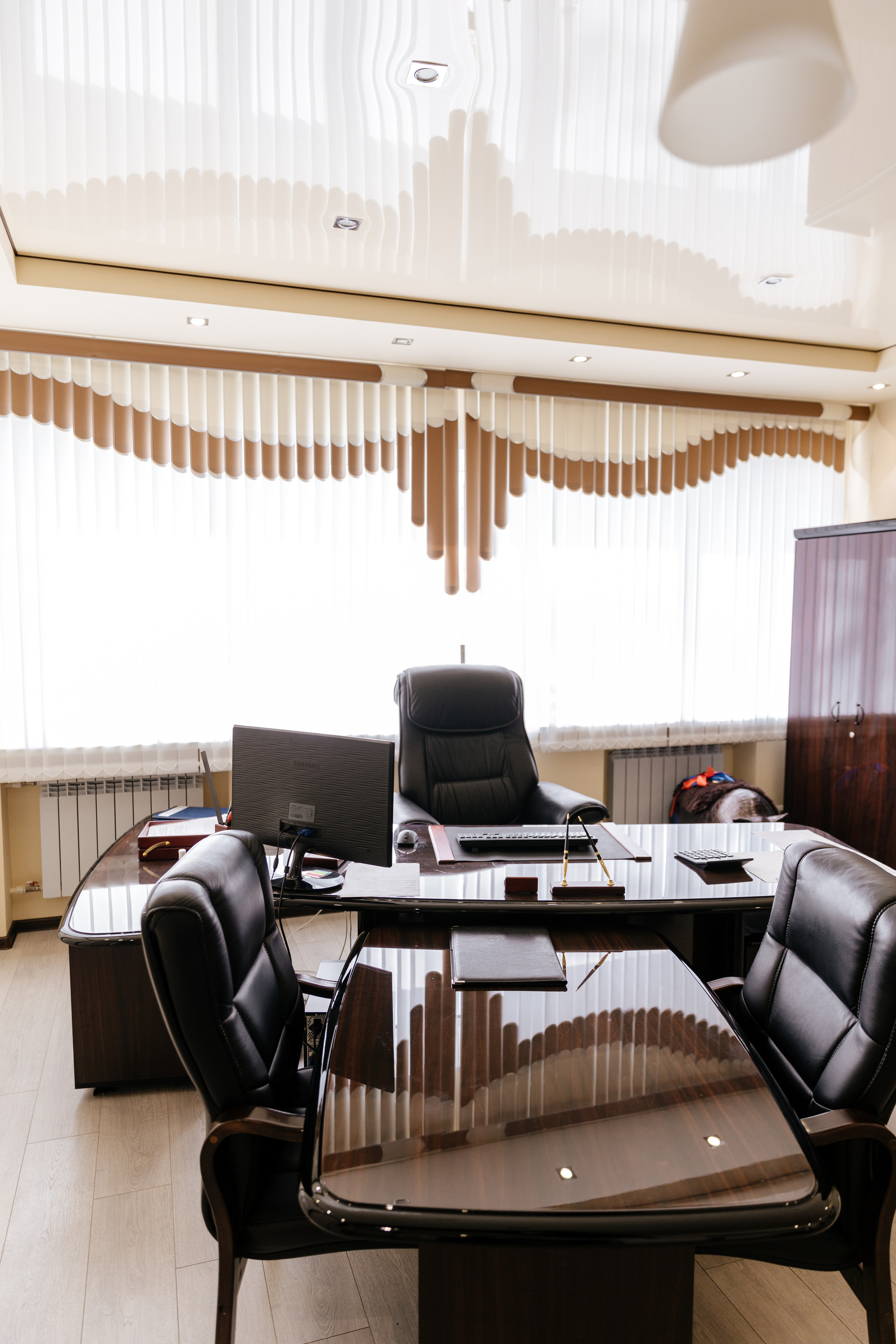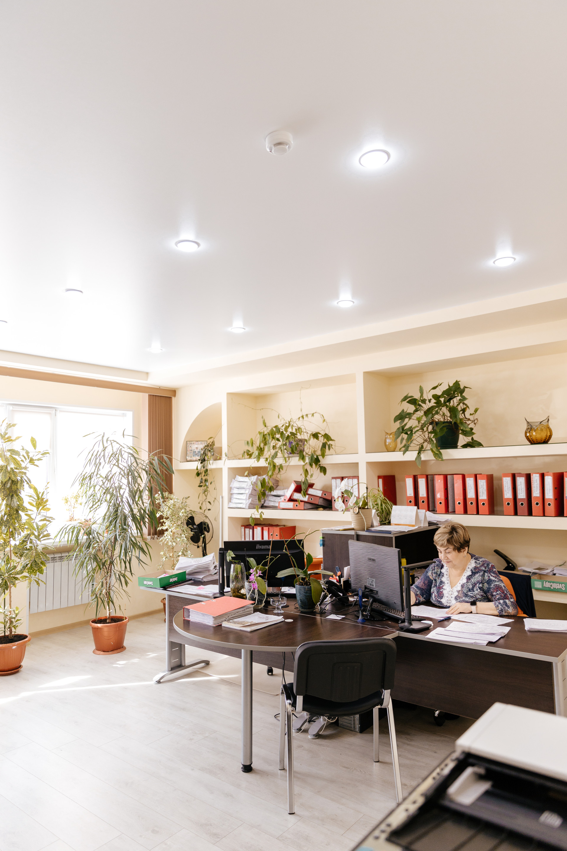 На первом этаже расположены 9 кабинетов, конференц-зал, 2 архива, хозяйственные помещения, столовая, санузлы.