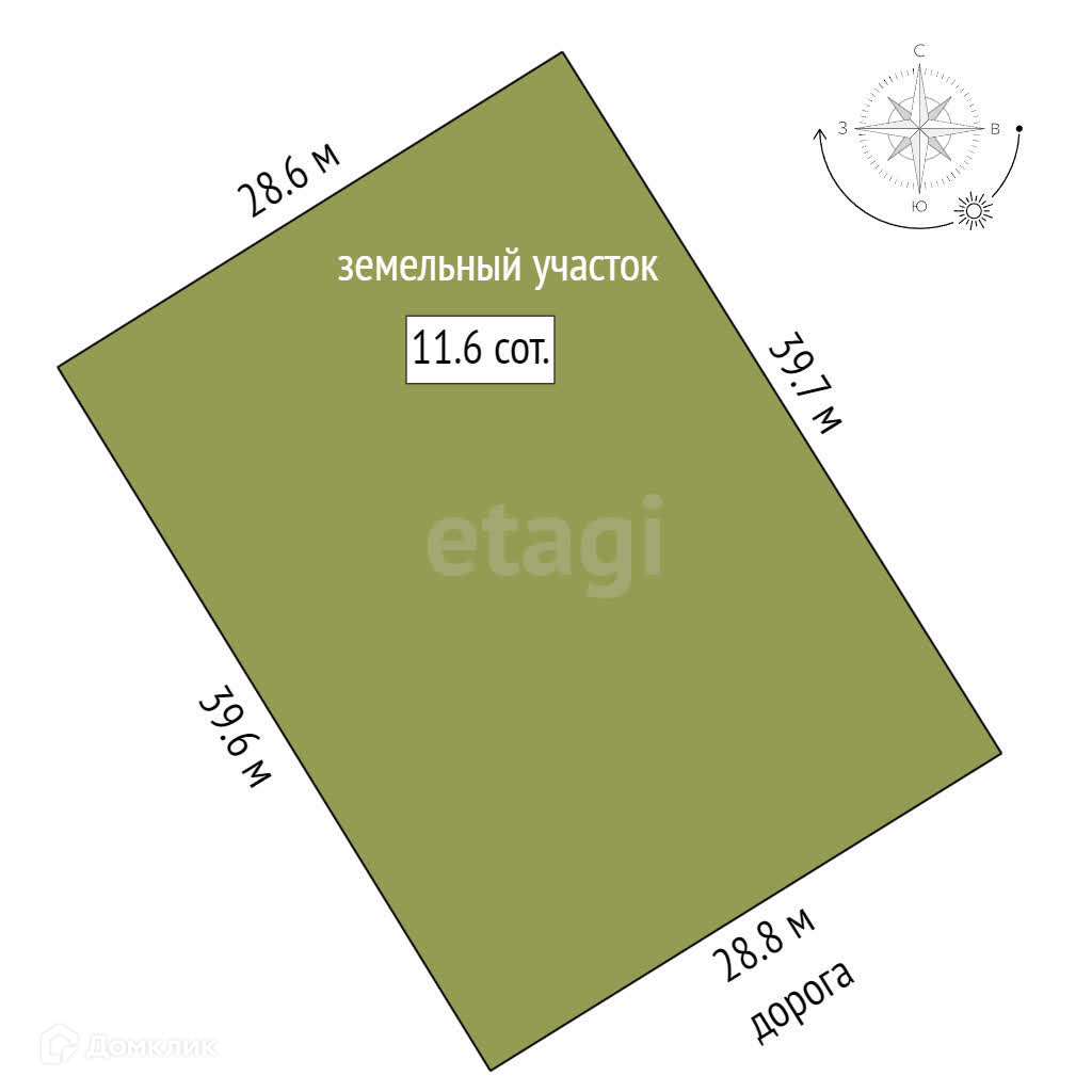 Площадь участка 11.6 сот.