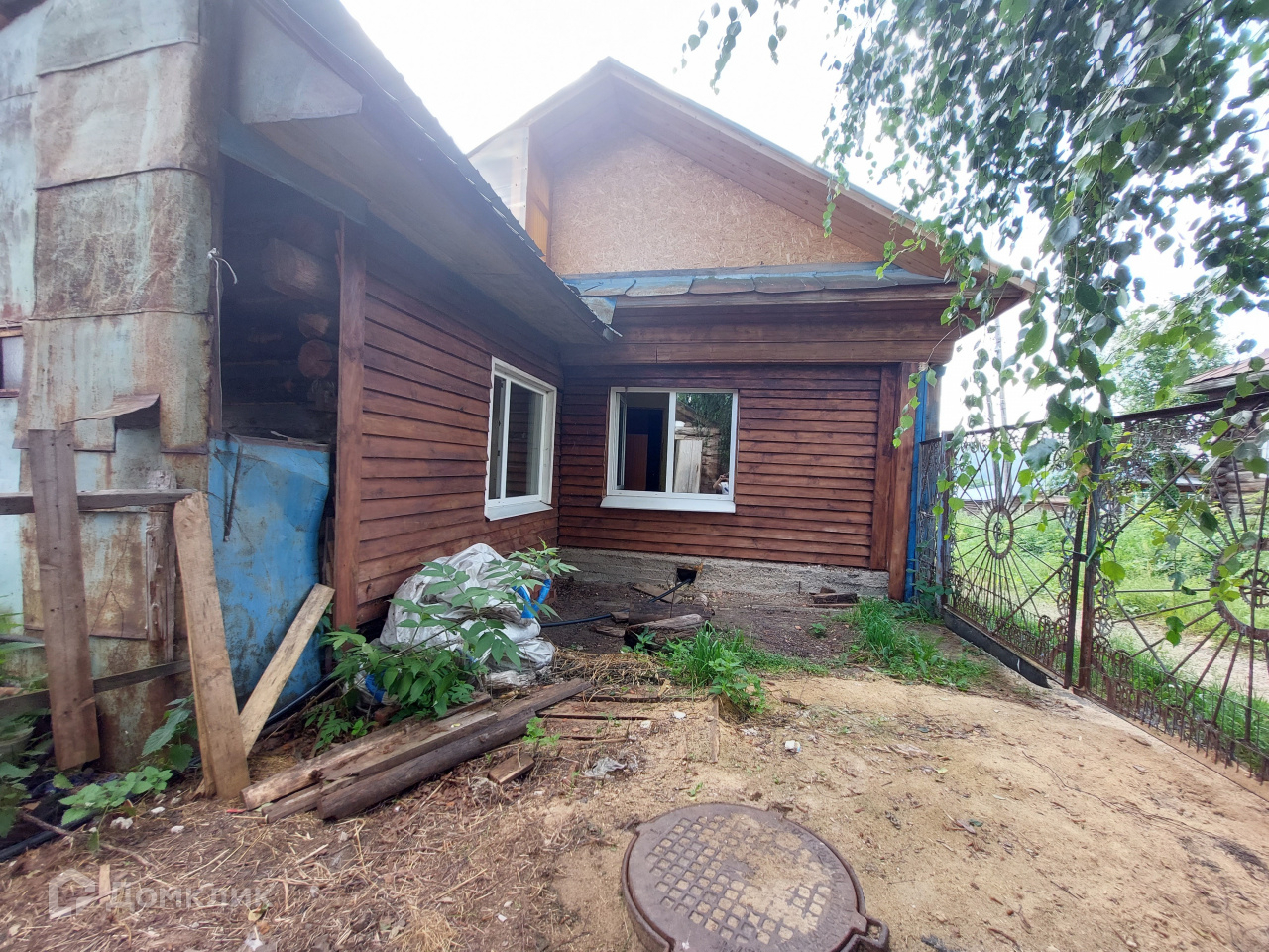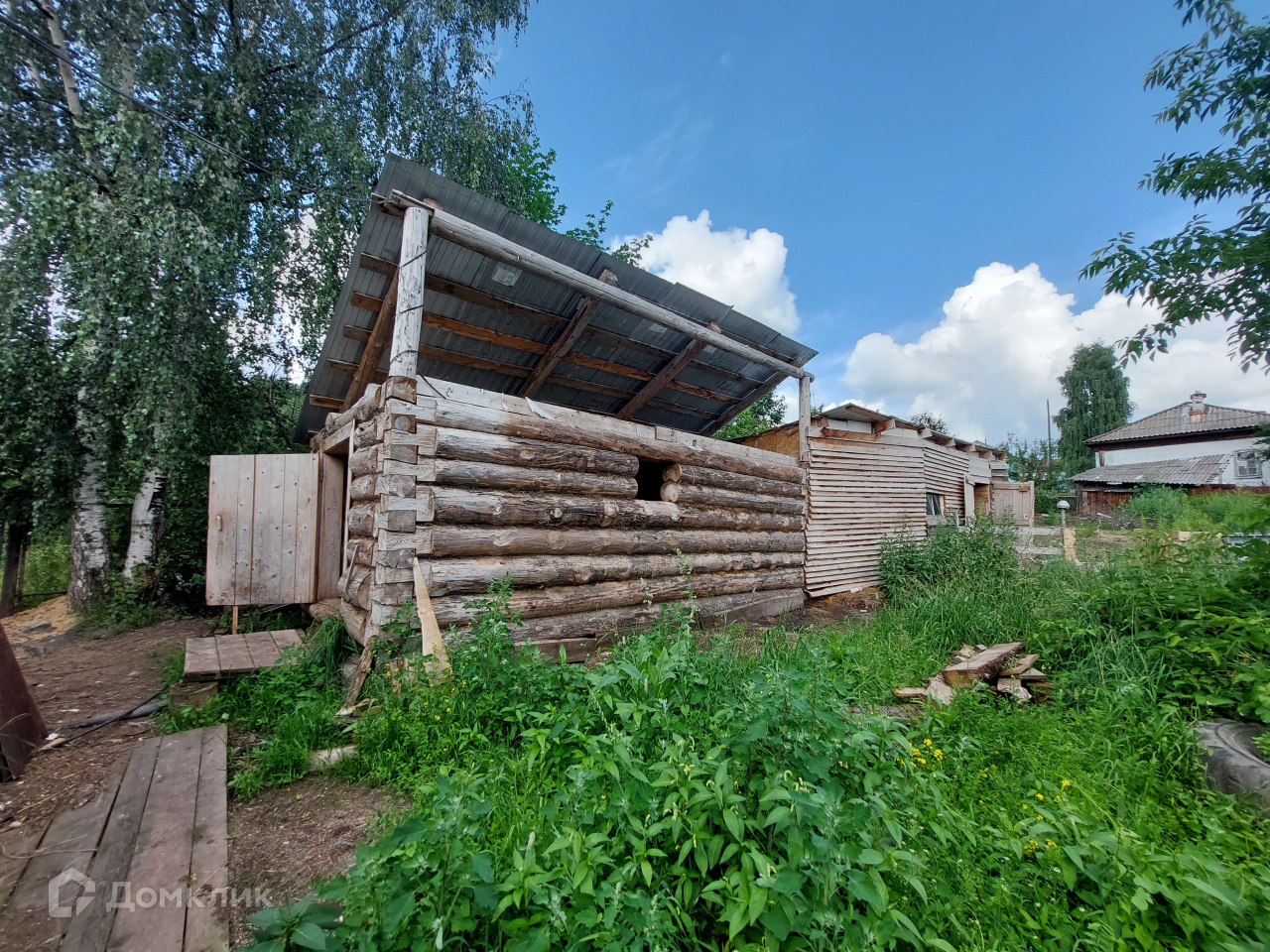 Имеется большой крытый двор. Бревенчатая баня 3x3 м, беседка. Есть стайки для содержания домашнего скота.
