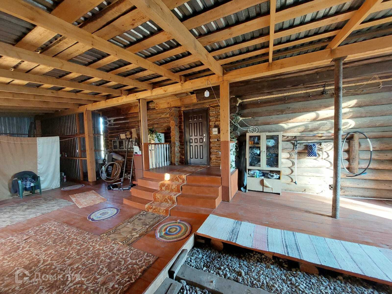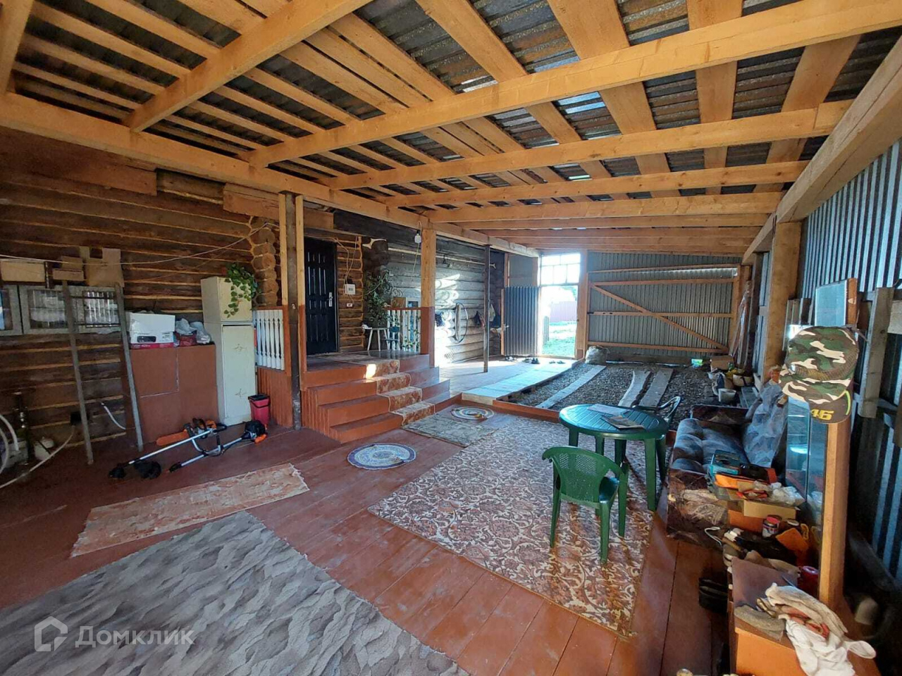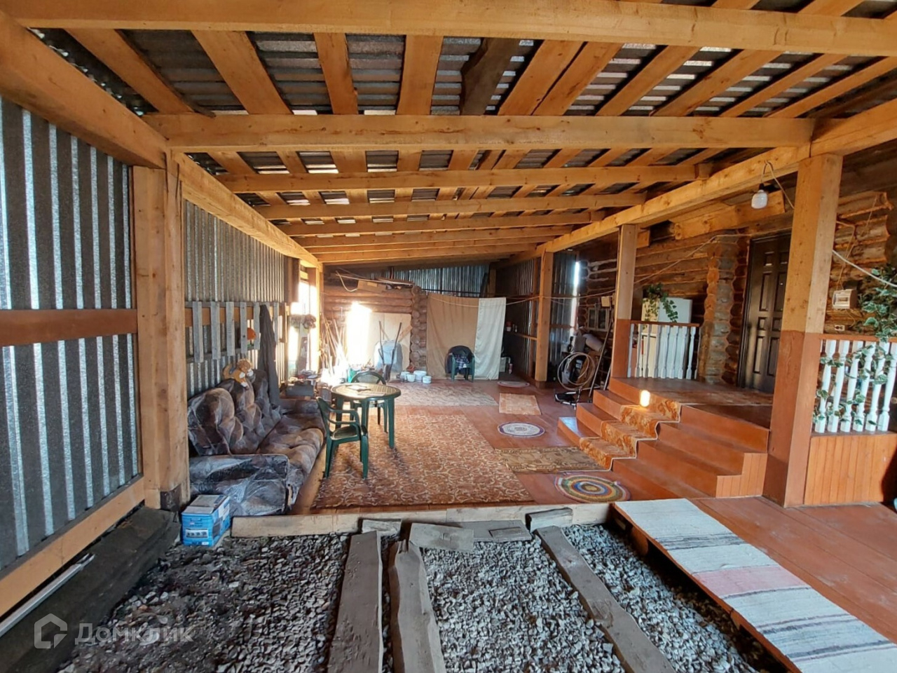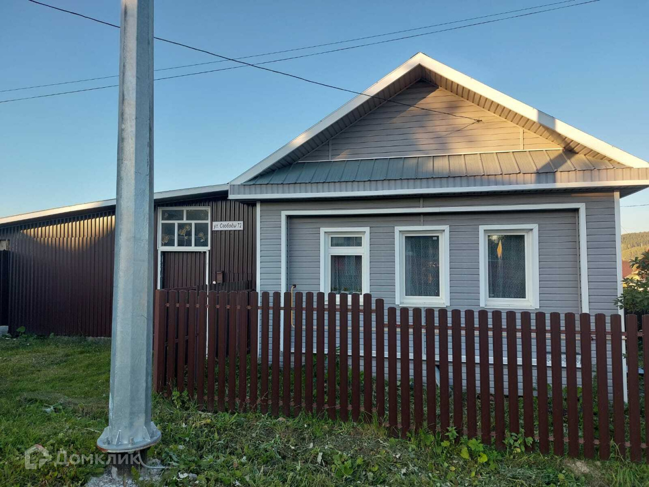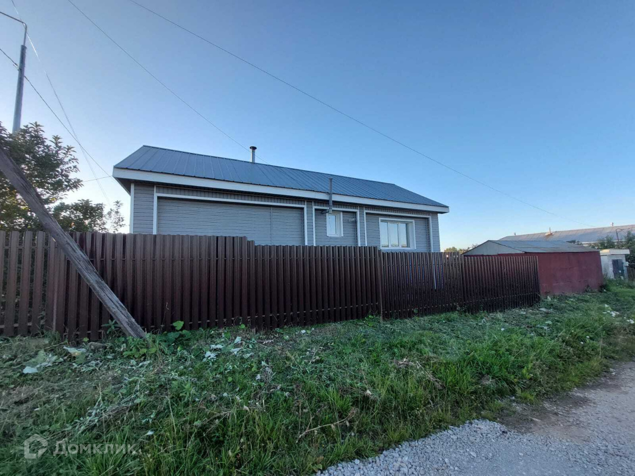 Имеется большой крытый двор, он новый. Во дворе баня 3х3 м² из бревна. Вся крыша покрыта новым железом. Фасад дома облицован сайдингом. Участок огорожен забором, по фасаду евро штакетник, в остальном профлист.