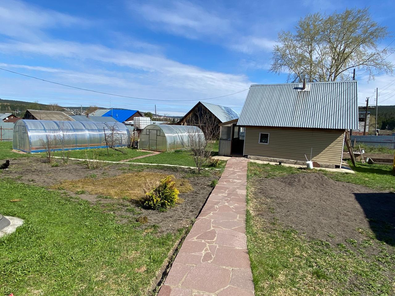 Для любителей загородной жизни имеется две теплицы, большой огород с грядками, сад с плодовыми и фруктовыми деревьями (яблони, вишни, смородина, крыжовник, малина и т.д.).