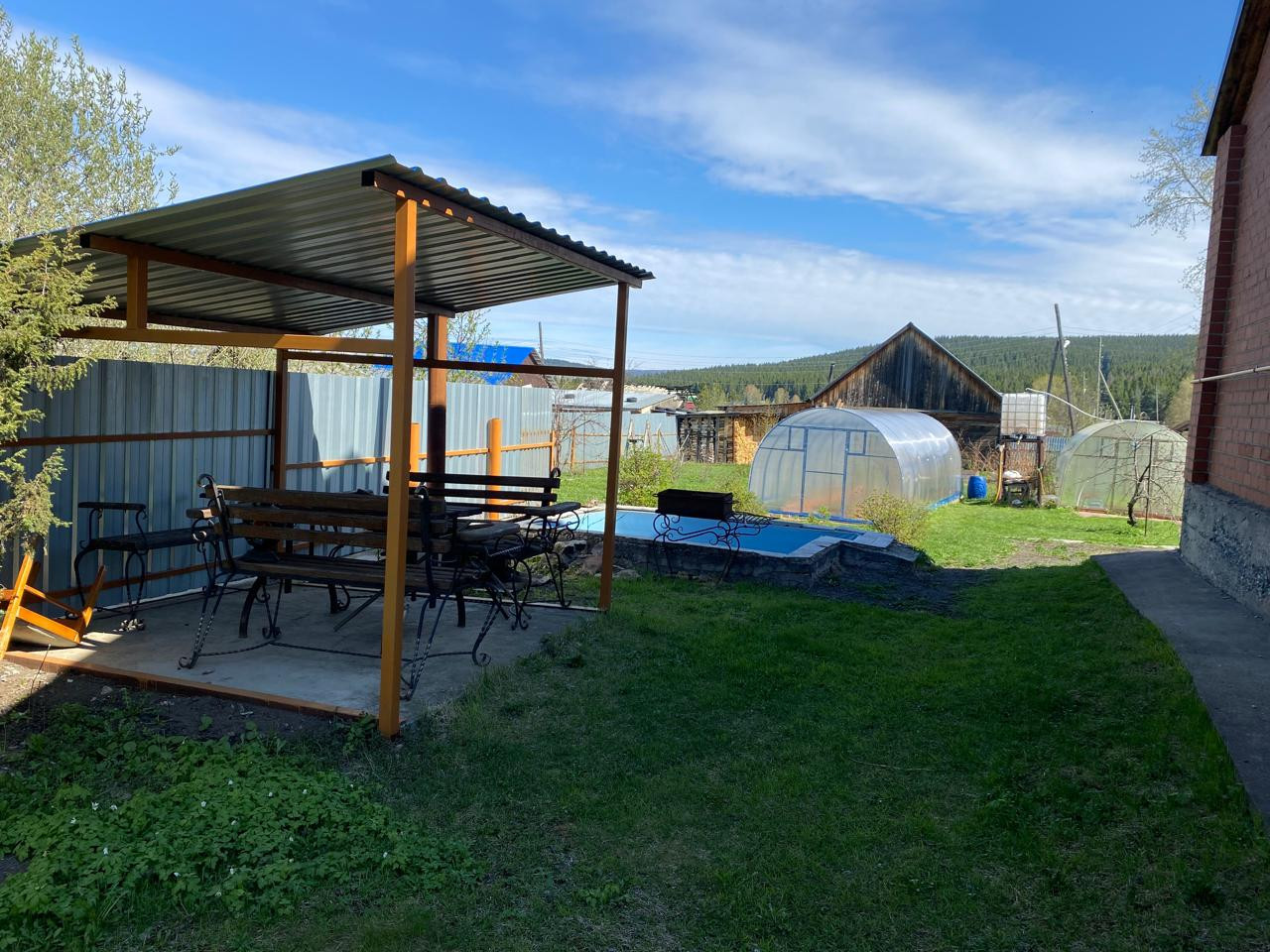 Отдельная зона барбекю с беседкой и мангалом.