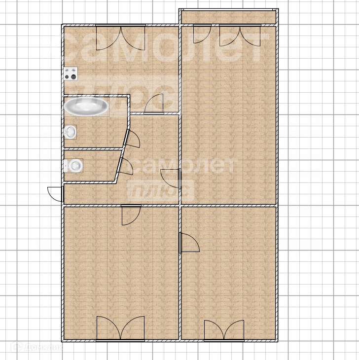 Общая площадь 61.8 м2