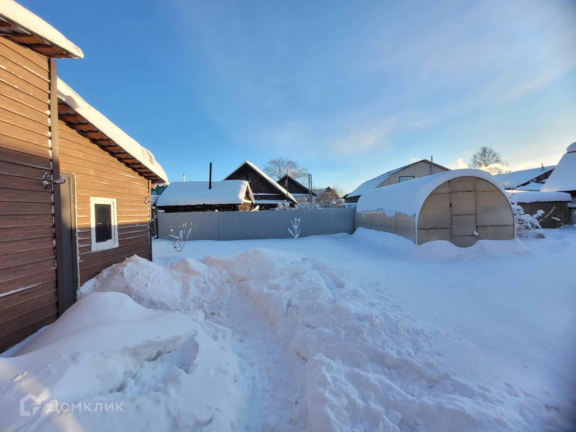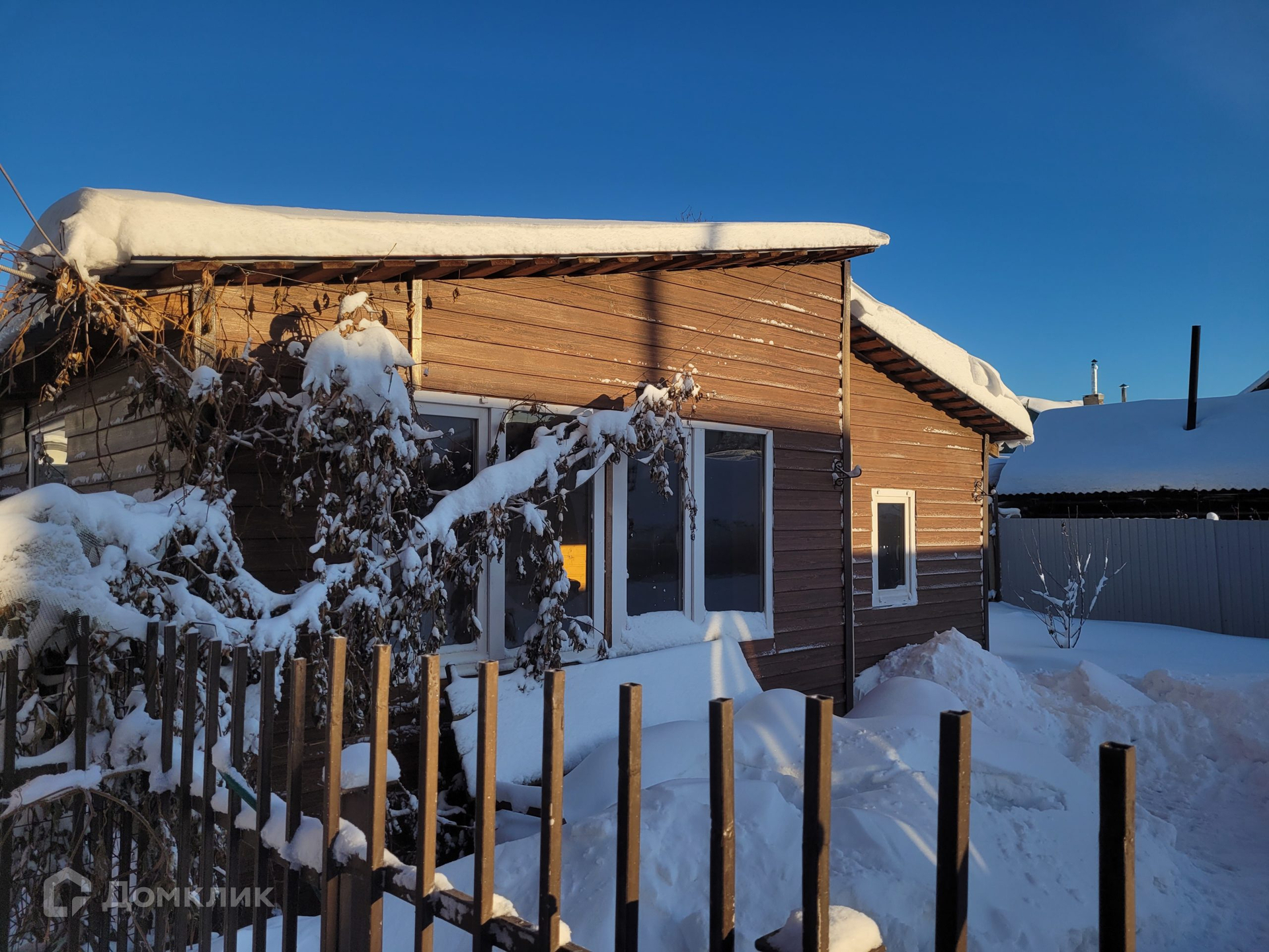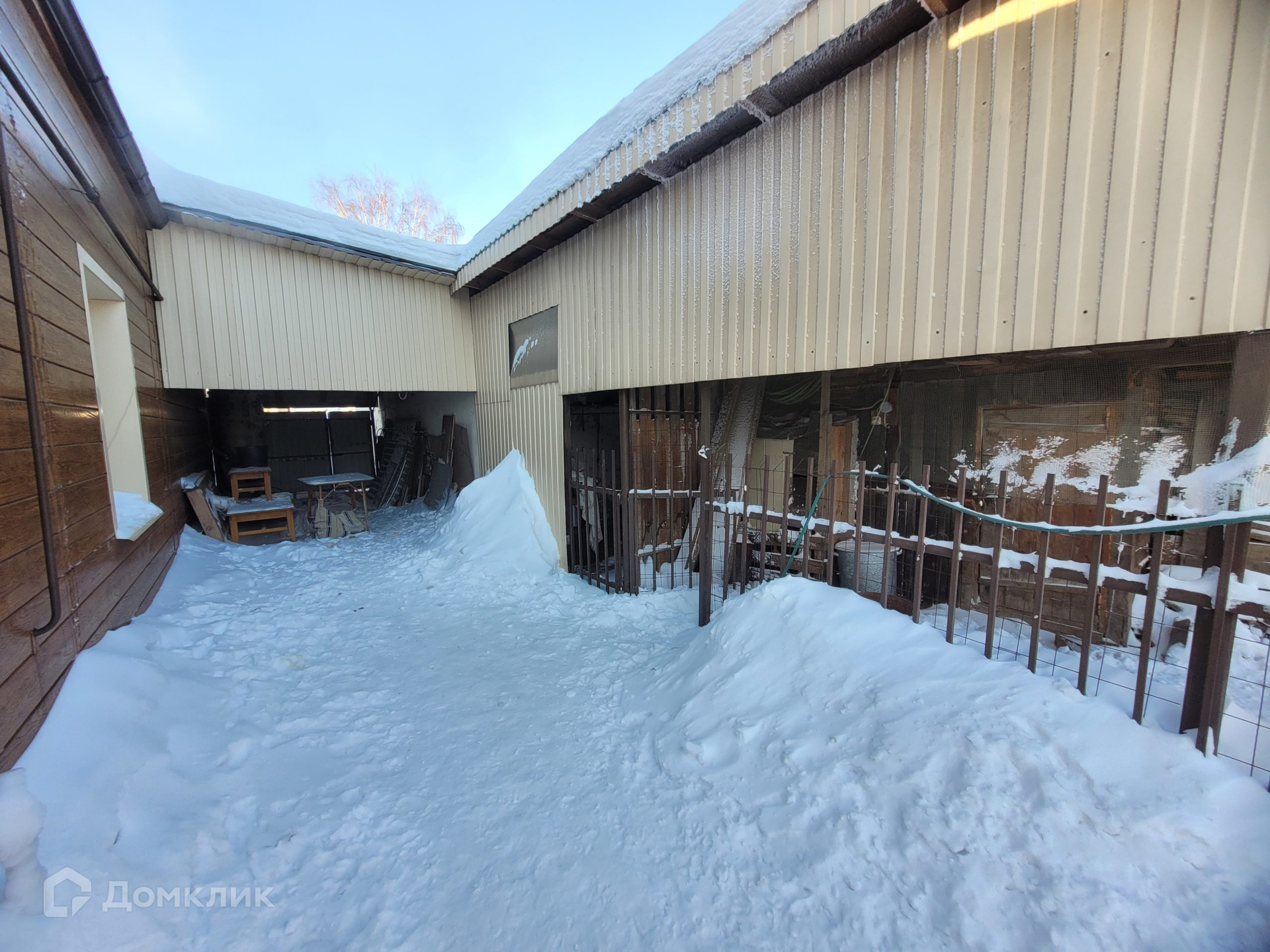 построен из шлакоблока толщ. 600 мм, обшит металлическим сайдингом с утеплителем, кровля –