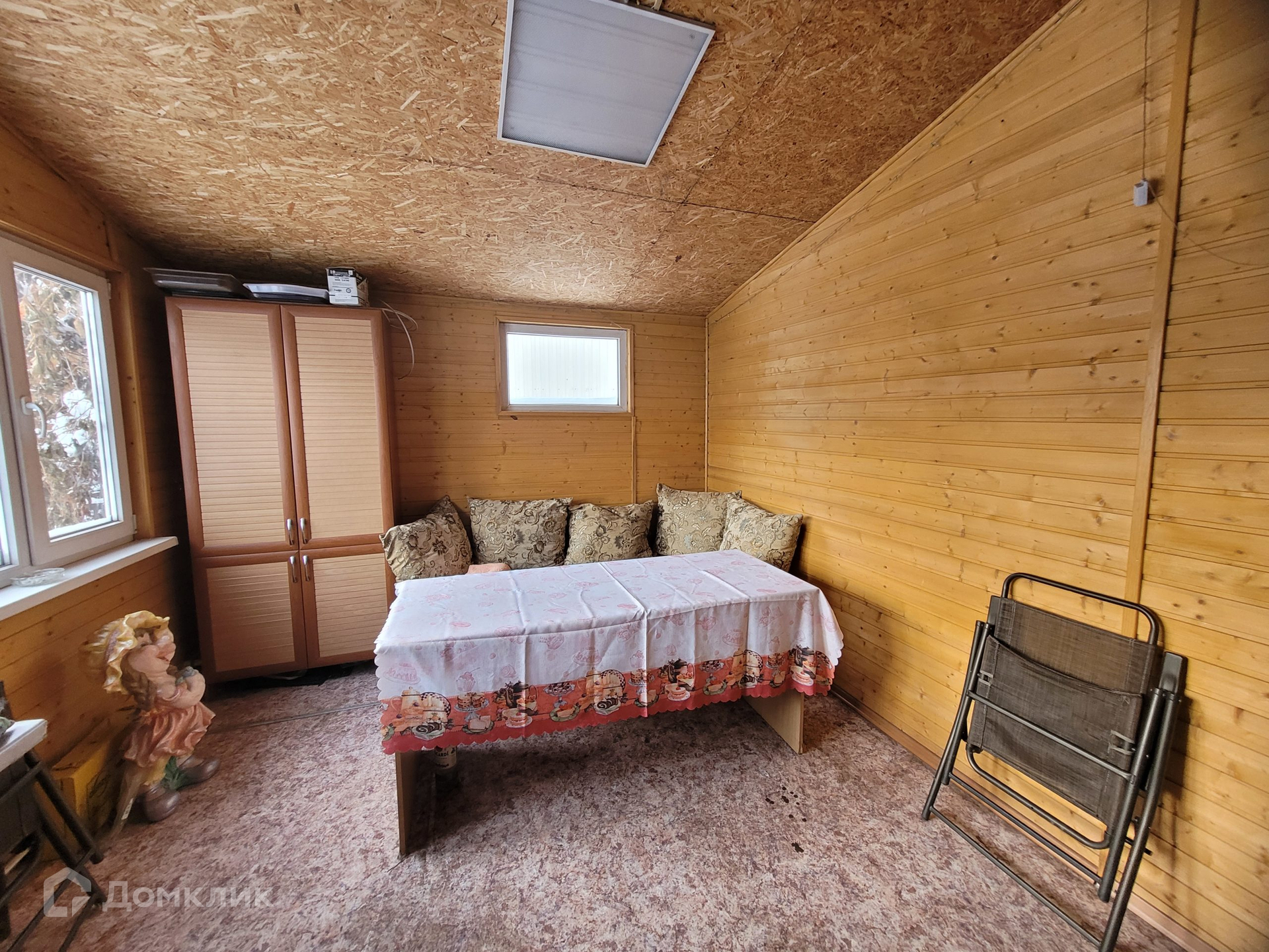 подъемными воротами с пультом, большая остекленная лоджия, дровяная баня, выход в баню из