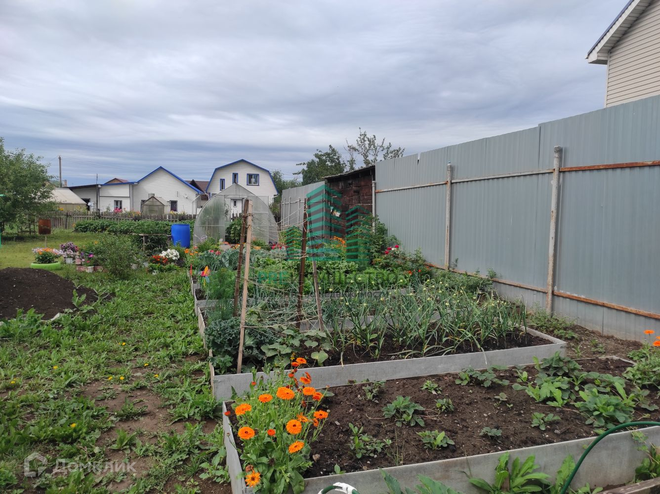 ✅ Участок ИЖС 8,8 соток, огорожен забором из профлиста, разработан, грядки сформированы, отделаны плоским шифером.