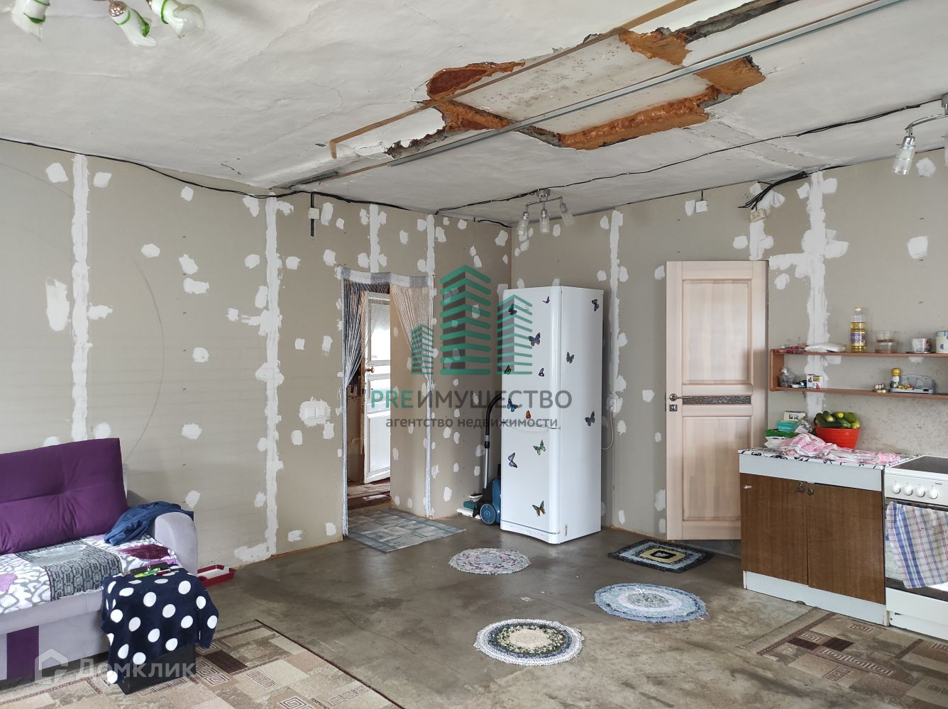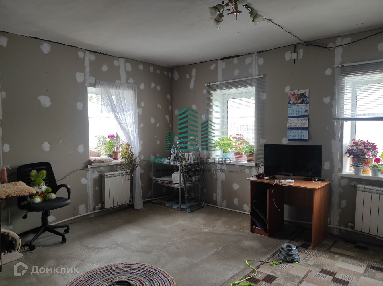 ✅ Стены толщиной в 2 шлакоблока, в кухне-гостиной пол залит бетоном, стены обшиты гипсокартоном