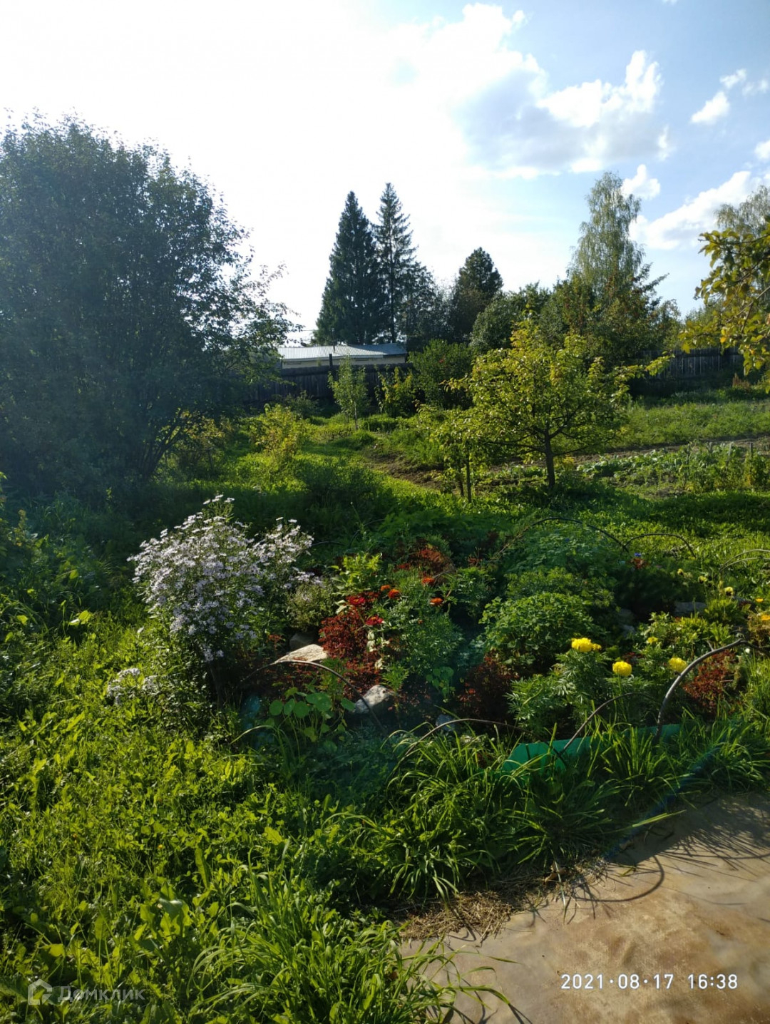 Участок 10 соток разработан . На участке растут плодовые деревья и кустарники (яблоня, груша, малина, вишня, смородина, крыжовник, жимолость). Две теплицы из поликарбоната.  Множество многолетних цветов.
