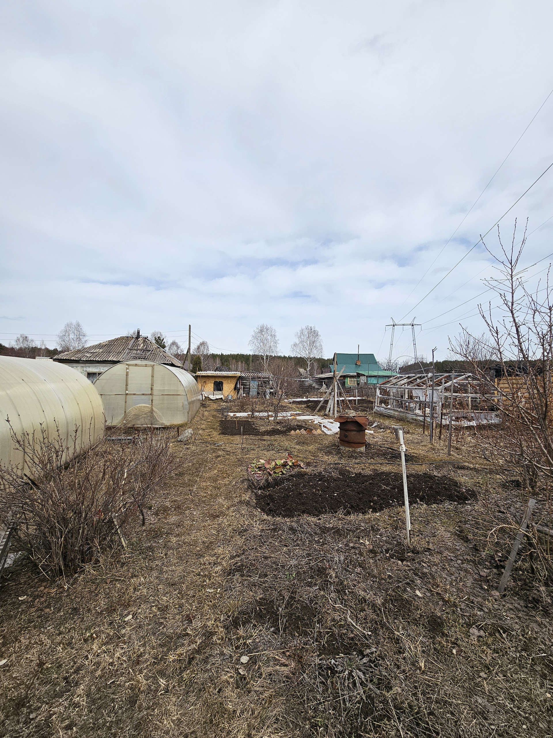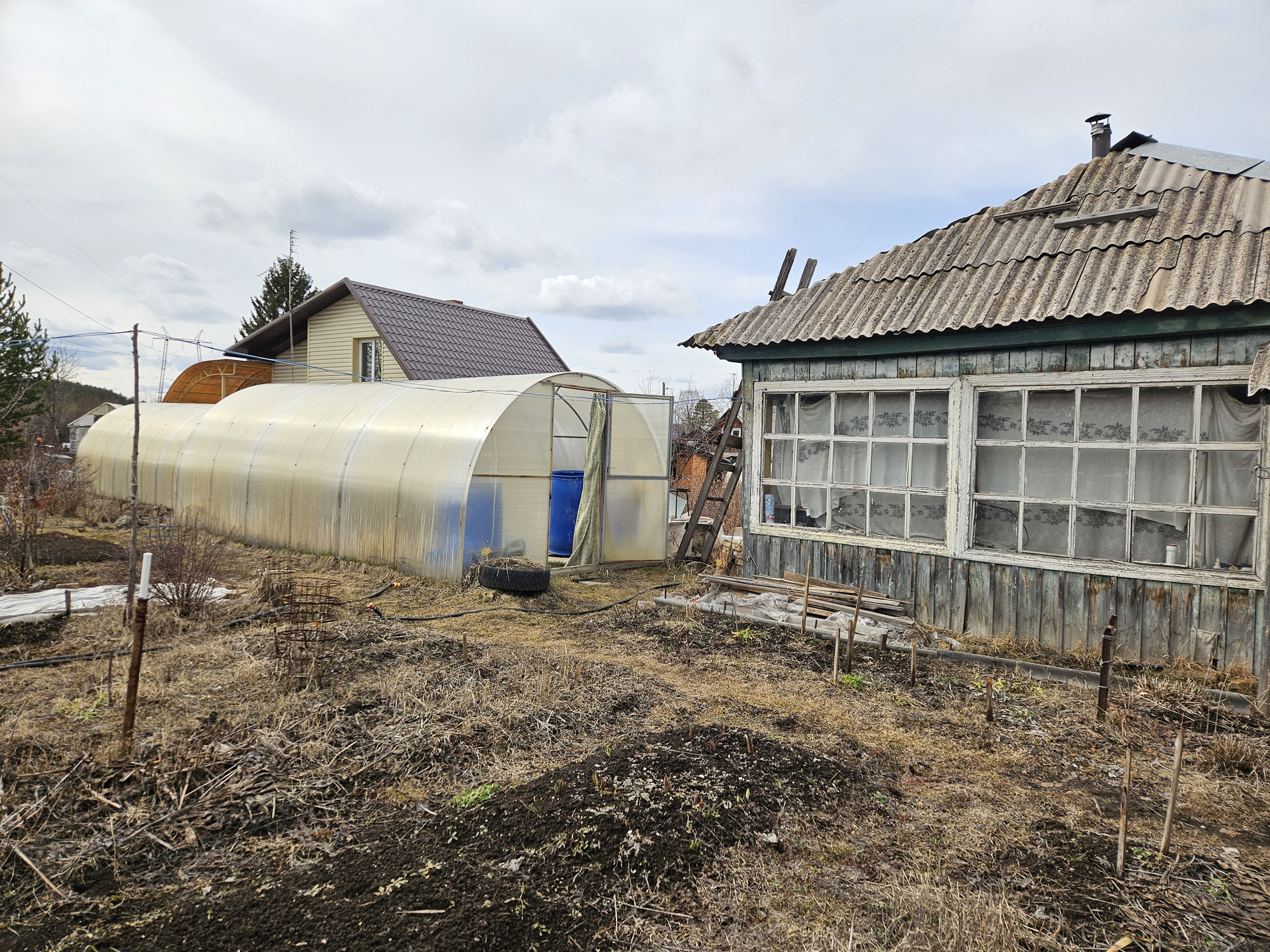 Участок разработан, сухой. Проведено межевание. На участке 3 теплицы.