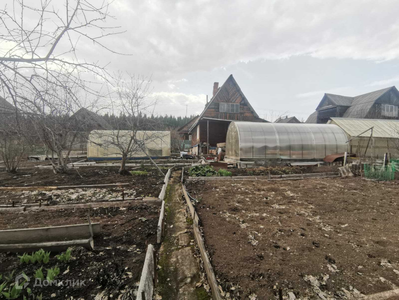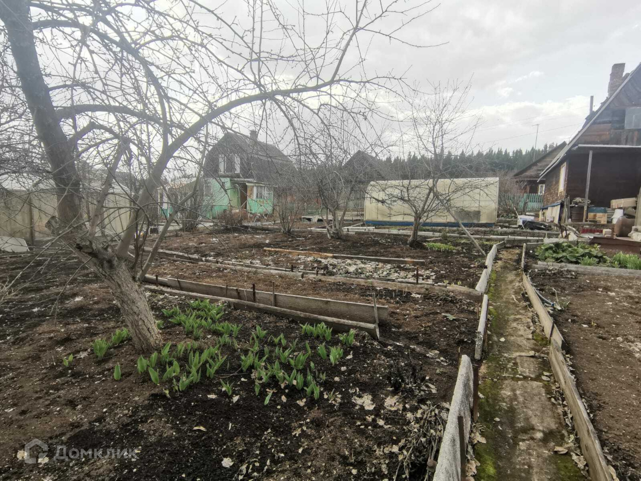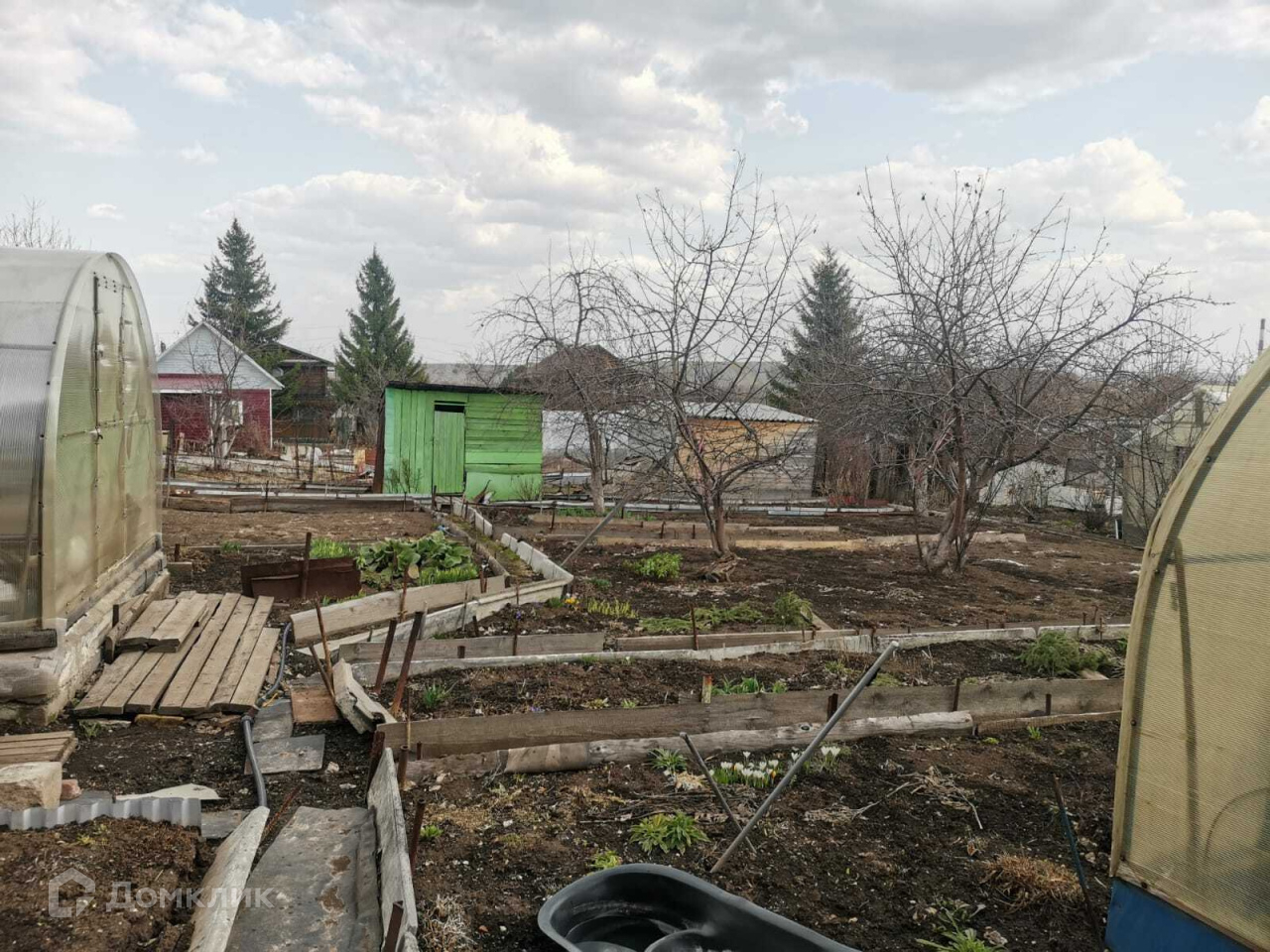 Участок разработан и ухожен, 2 теплицы, 5 яблонь, слива, малина и много цветов, проведен летний водопровод.