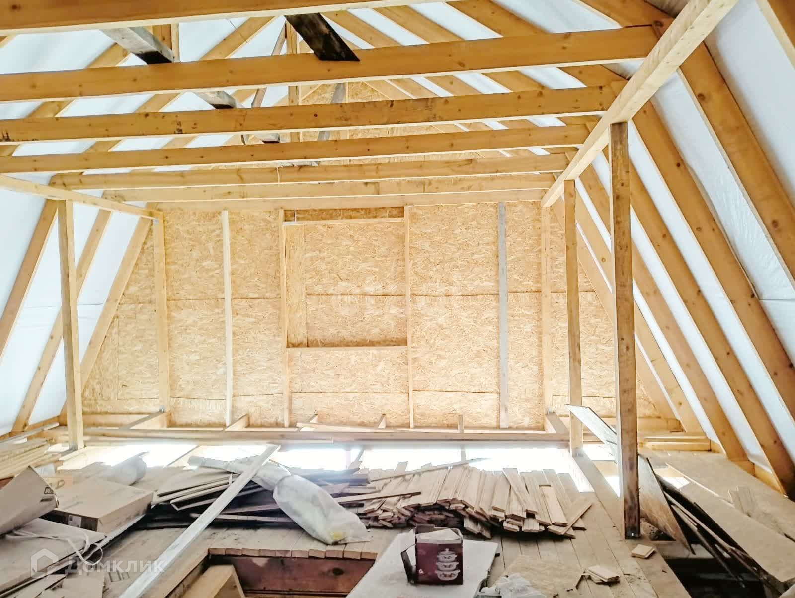 2-ой мансардный этаж начинается с деревянной лестнице. Вы увидите большую площадь 2-ого этажа, которую можно разделить на комнаты.