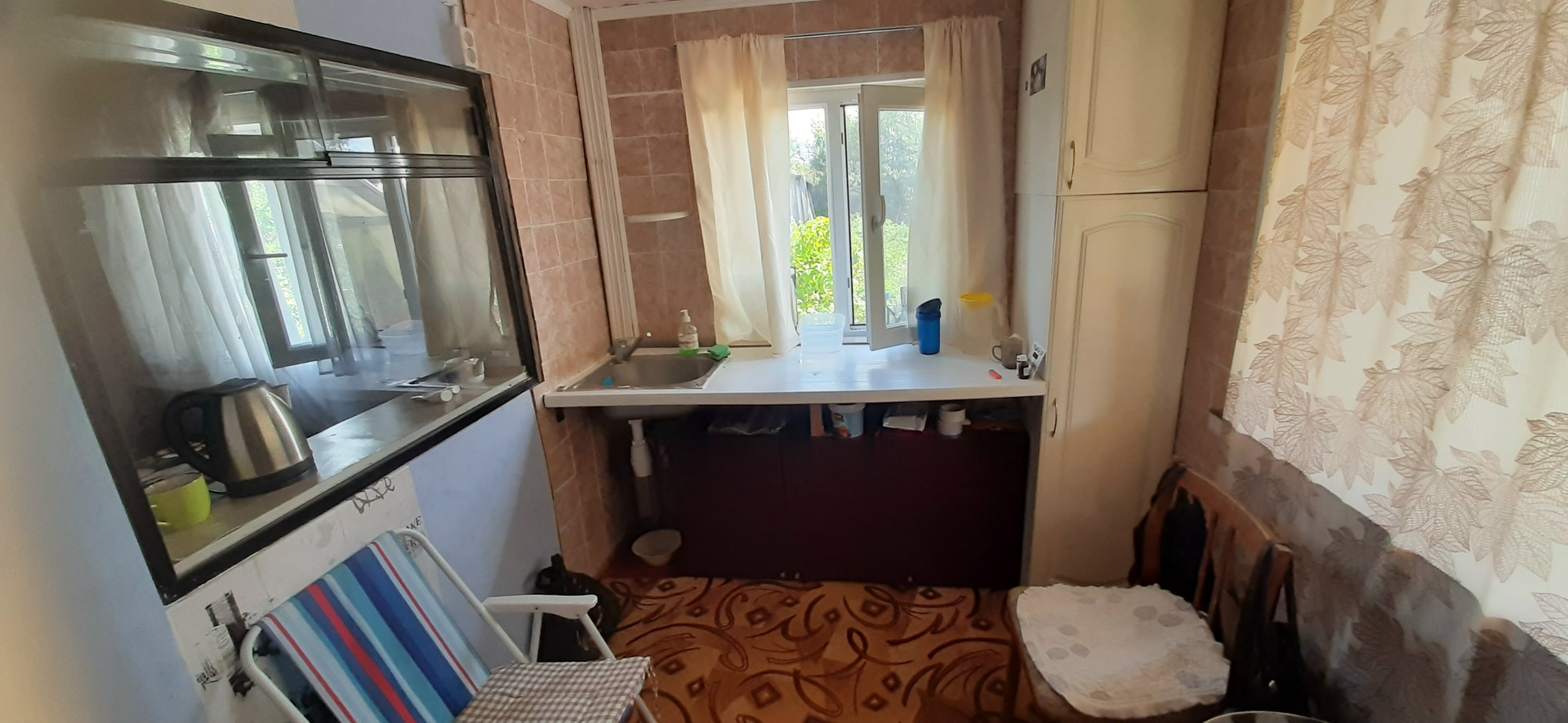 дача 2 этажа , свежий ремонт, с участком  7 соток. Участок находится в живописном месте,на берегу пруда, собственный выход. Соседи получаются с одной стороны. Забор металлопрофиль 2.5 м. В доме проведена вода от центрального волопровода на 1 этажи 2-ой. На первом этаже 3 комнаты,из них 2 -е спальни,прихожая. На2-ой этаж ведет лесница. Второй этаж оборудован под кухню. есть электронагреватель для горячей воды. Для готовки еды большой газовый баллон и двухкомфортная плитка.Все оставляем. Холодильник и телевизор оставляем. Обогрев конвектор " Балли". На первом этаже отопление  современной печкой. В доме тепло за 15 мин. и до утра тепло. Можно проживть круглогодично. Летний душ сделан в прошлом году. Для горячей воды бак на 50л. Вода нагревается за 20 мин. Туалет на улице. Баня топится за пол.часа. Рядом бассен диамтр 4 метра. 3 теплицы. Все ухожено. Грядки металлопрофиль обшиты. На участке семенная клубника,черная,красная,белая смородина,малина сортовая,слива,яблоня,вишня,жимолость.