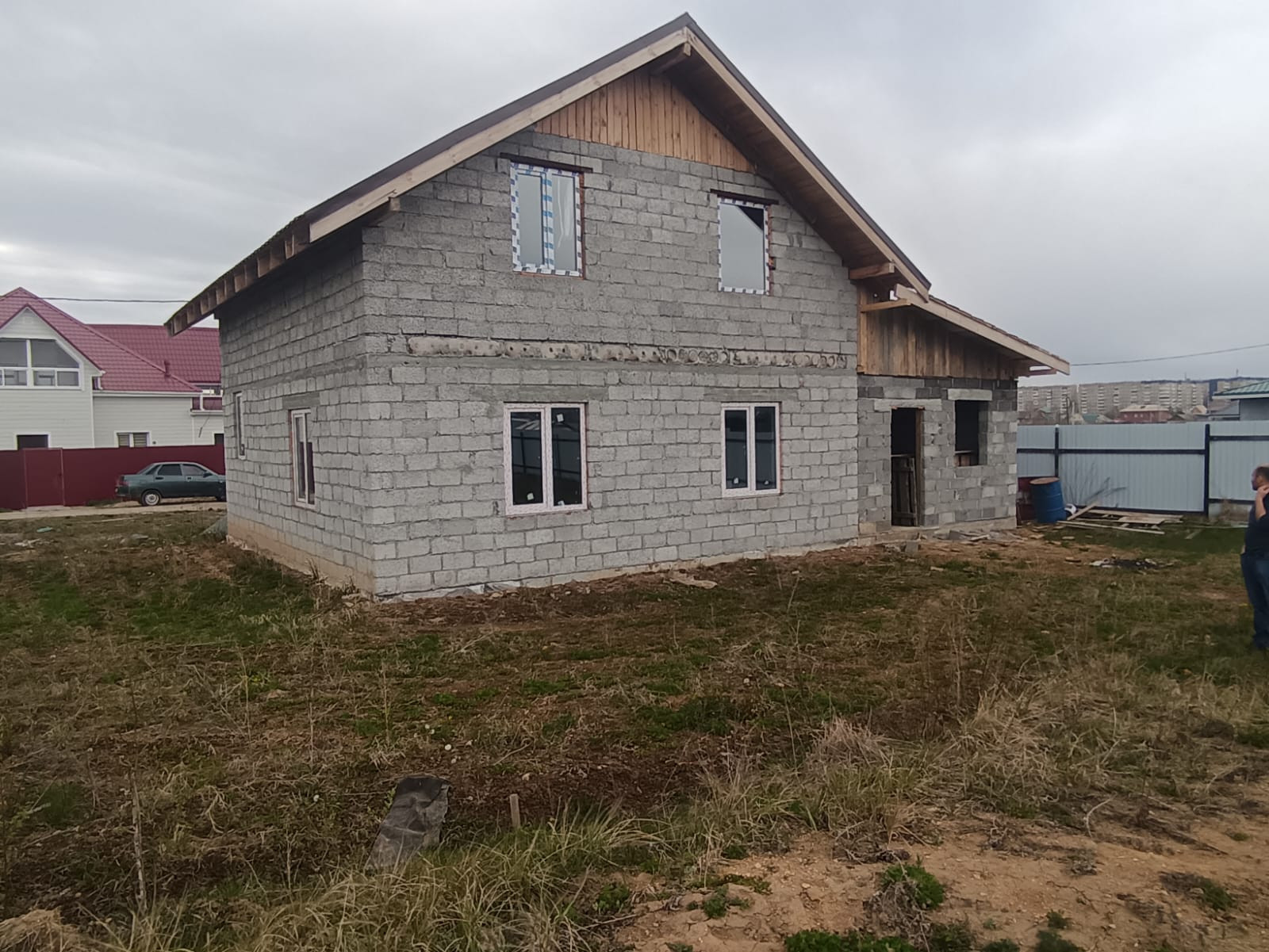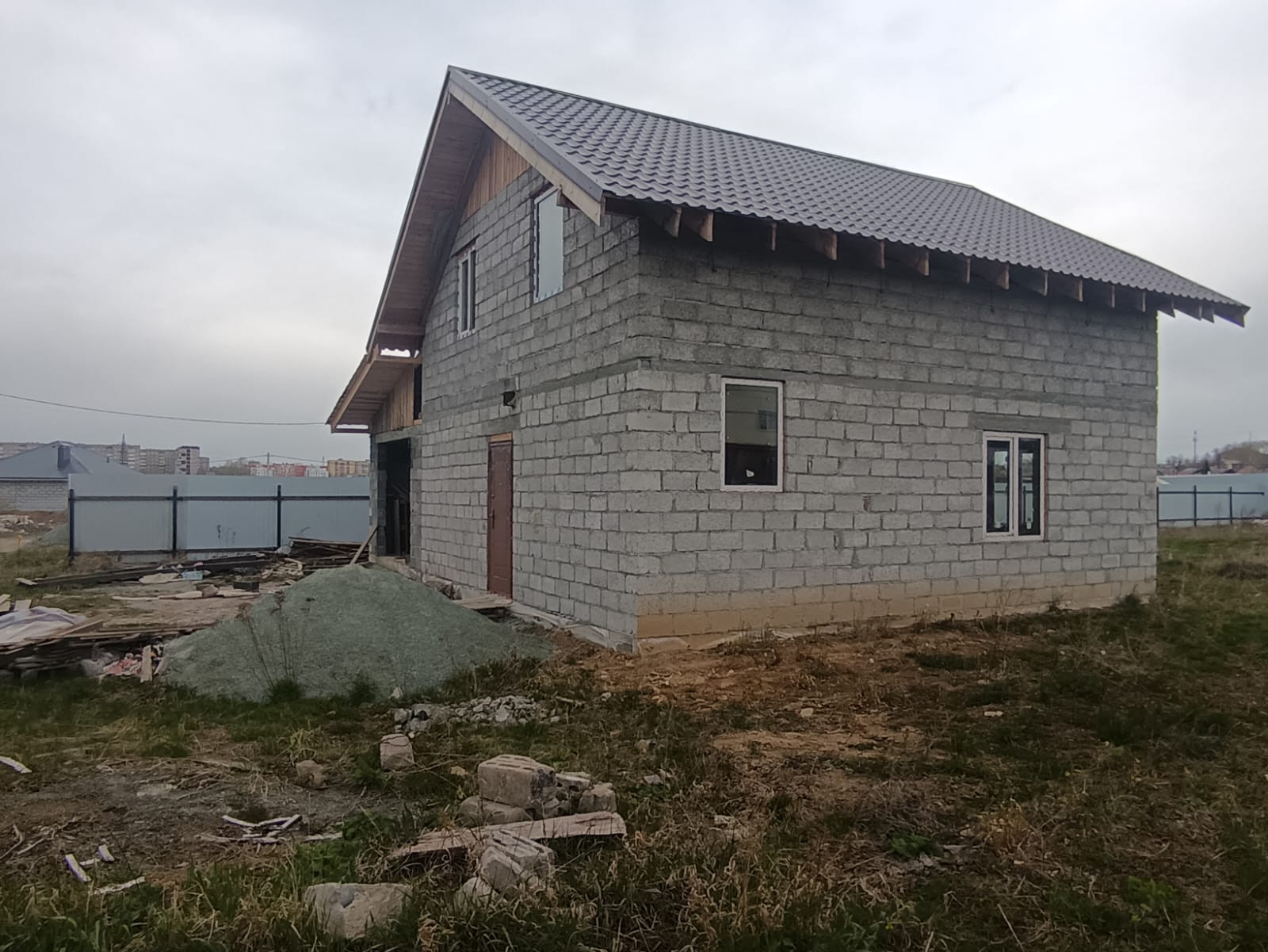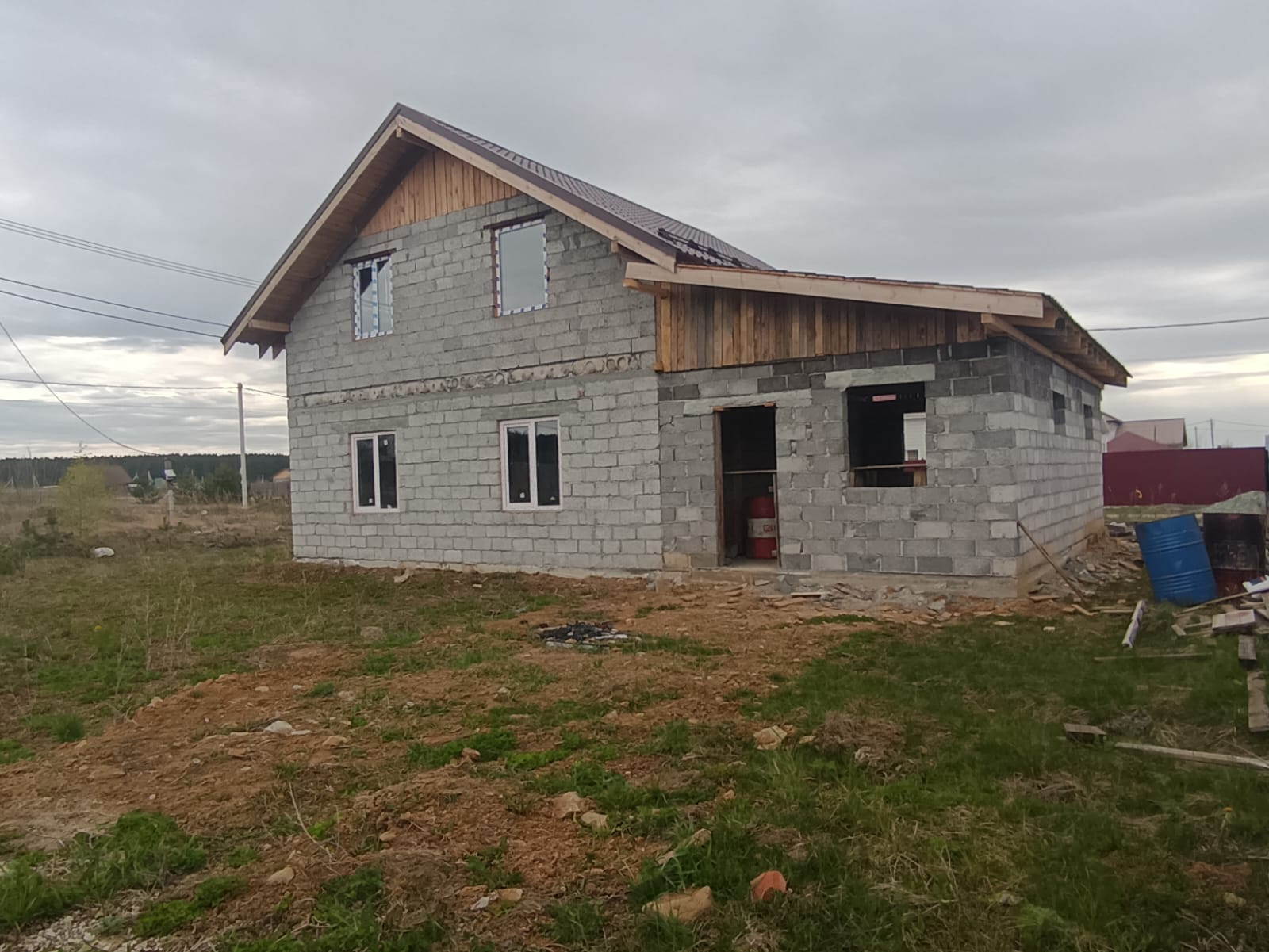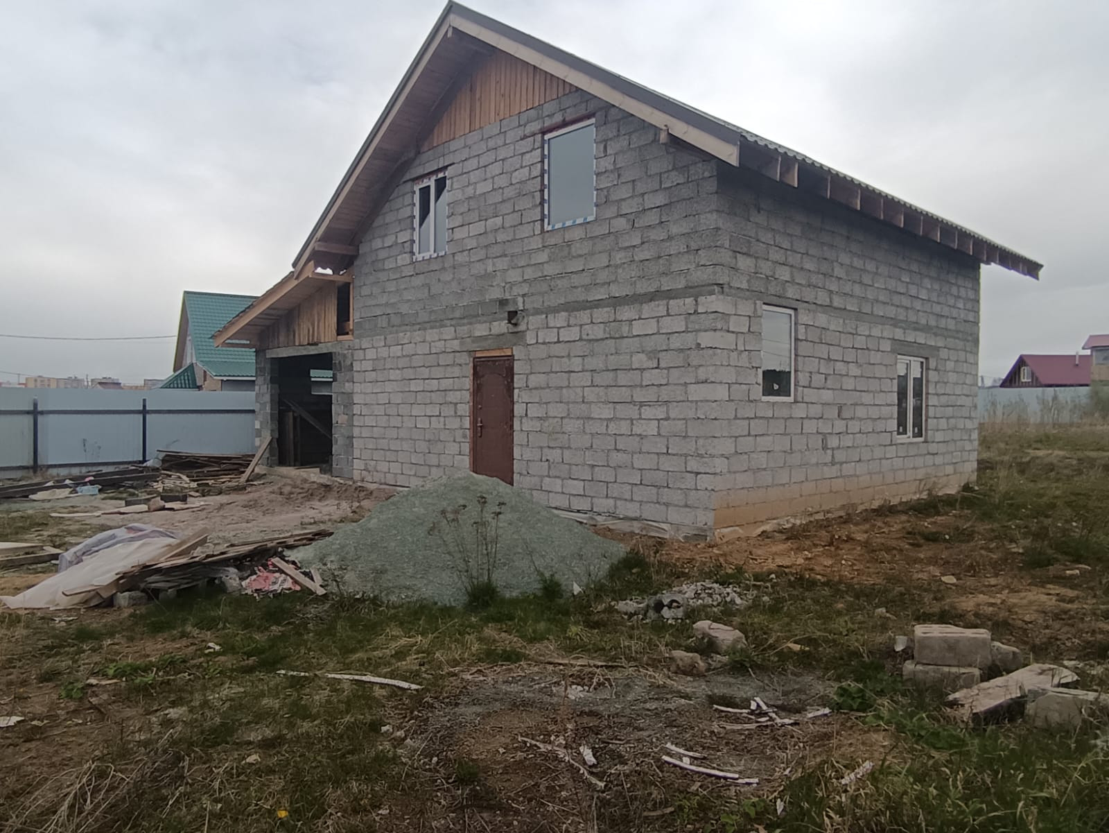 Дом не достроенный, вы можете достроить его под свои желания и мечты. Двухэтажный, второй этаж мансардный. Перекрытие между этажами ЖБ плита, фасад свайно-винтовой, залитый, сделано все качественно для своей семьи.