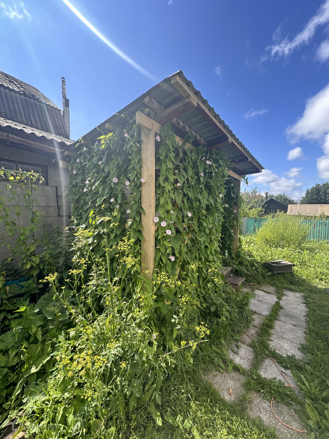 Участок 4 сотки, огорожен забором из профлиста, есть теплица 6 метров, хорошая беседка, ягодные кустарники.