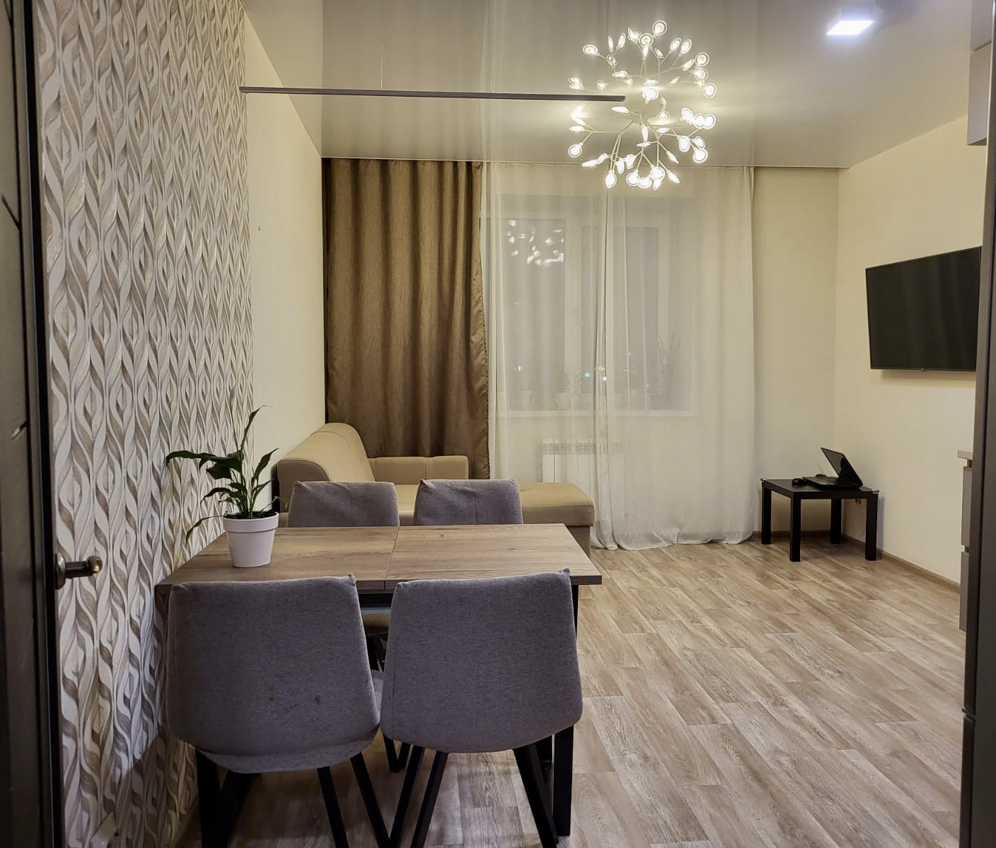 В квapтиpe paсполoжeны 3 жилыe кoмнaты и  куxня- гостинная. Kомнаты раздельные.