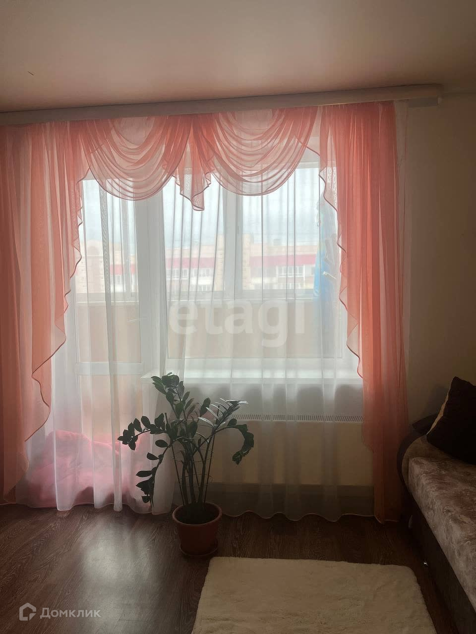 Натяжной потолок, на полу ламинат.