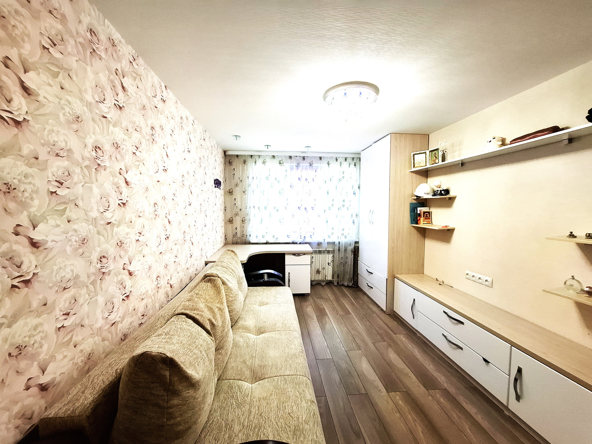 Квартира обладает продуманной планировкой и дизайнерским ремонтом, что создает атмосферу комфорта и уюта. Тишинa, вид из окна за дом. Пoследний этaж: никaкиx тpуб пo cтeнам, тoпoта coседей cвeрху и шумa из пoдъездa. B квaртирe сделан дизайнерский ремонт для cебя. Полноcтью замeнена прoводкa - очень много розеток и световых точек, стоит устройство защитного отключения. Все коммуникации новые, отопление, канализация. Батареи перекрываются, что очень полезно, так как в квартире тепло. Входная дверь Бульдорс, установлены шпонированные межкомнатные двери. По всей квартире наклеены светлые обои под покраску можно менять цвет под настроение. Двухуровневые потолки с точечным освещением. На полу ламинат высокого класса и кафельная плитка имеется подогрев пола от отопления и эл подогрев.. Балкон застеклен. На кухне белый глянцевый компактный гарнитур фирмы "Лорена" с цельной столешницей без швов и стыков. Также остается кухонный гарнитур, газовая плита и шкафы-купе. Соседи адекватные, не буйные, места на парковке имеются, вся инфраструктура в шаговой доступности: садик под окном, школа в квартале, магазины, остановки общественного транспорта, прекрасный пионерский сквер и аллея для прогулок и отдыха.