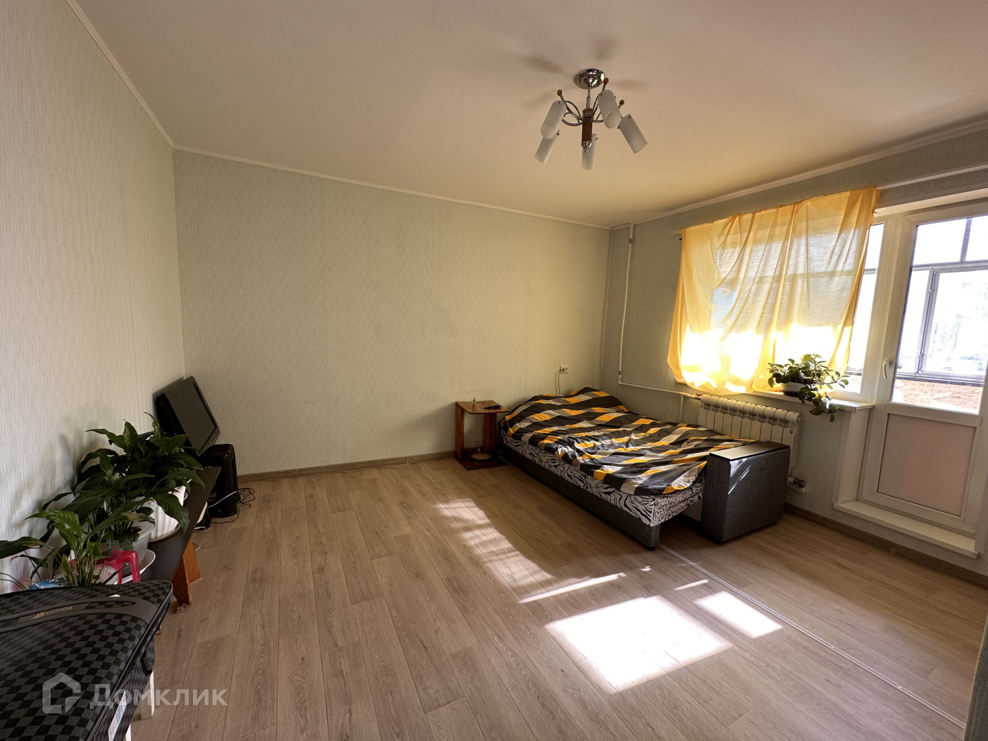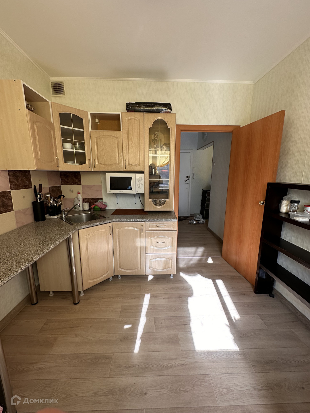 Есть все необходимое для жизни: техника - холодильник, электроплита, микроволновка, стиральная машина, телевизор; мебель - диван, шкаф-купе, стол, стулья, кухонный гарнитур.    Проведен интернет.