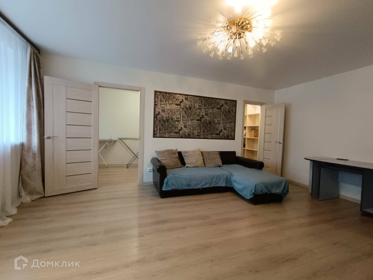 Квартира оборудована: электрочайник, микроволновка,телевизор, стиральная машинка автомат, двухкамерный холодильник, утюг, пылесос, сушилка для белья, гладильная доска, две отдельные кровати и раскладной диван, кухонный стол с 4 стульями, кухонный гарнитур, шторы, люстры.