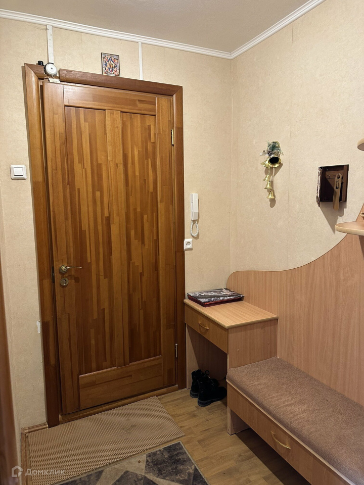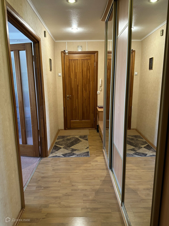 омнатные двери. На полу ламинат, ковролин. Санузел раздельный, кафель. В ванной душевая кабина, бойлер на горячую воду. На кухне на полу кафельная плитка, а также фартук на стенах из плитки. Сейф дверь. Домофон.