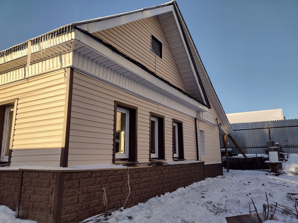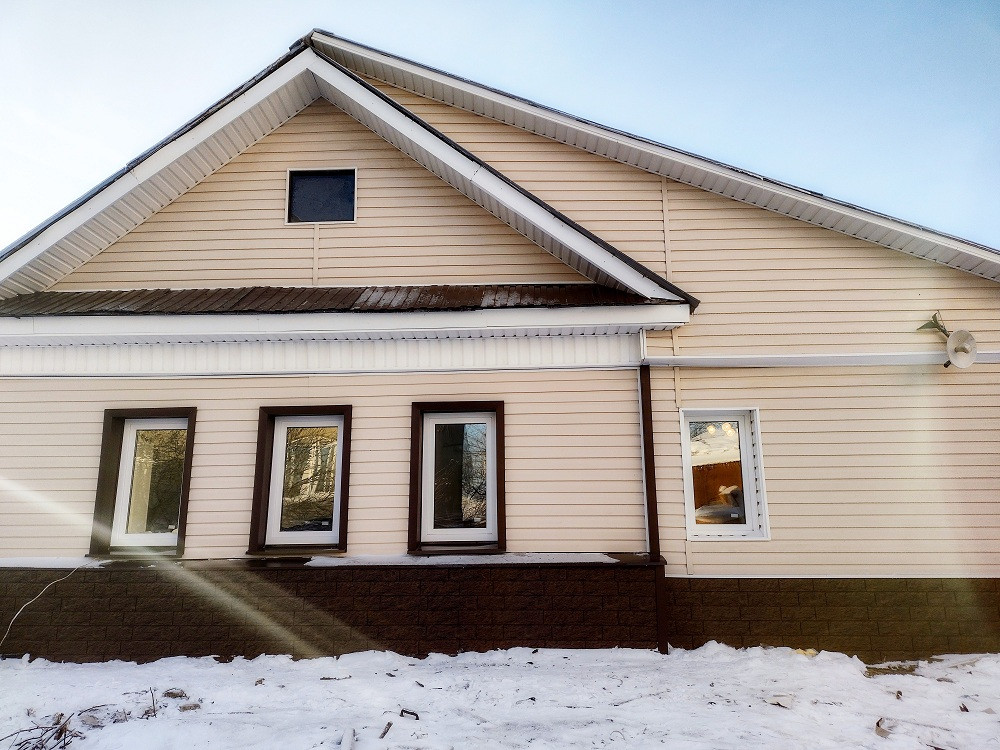 Выполнен качественный ремонт всего дома в 2022 году. Новая кровля. Пластиковые окна 9 шт. Отделка фасада (дорогой сайдинг гранд лайн, а не китай). Дорогие флизелиновые обои и натяжные потолки; на полах - высококачественный ламинат и т.д/т.п.