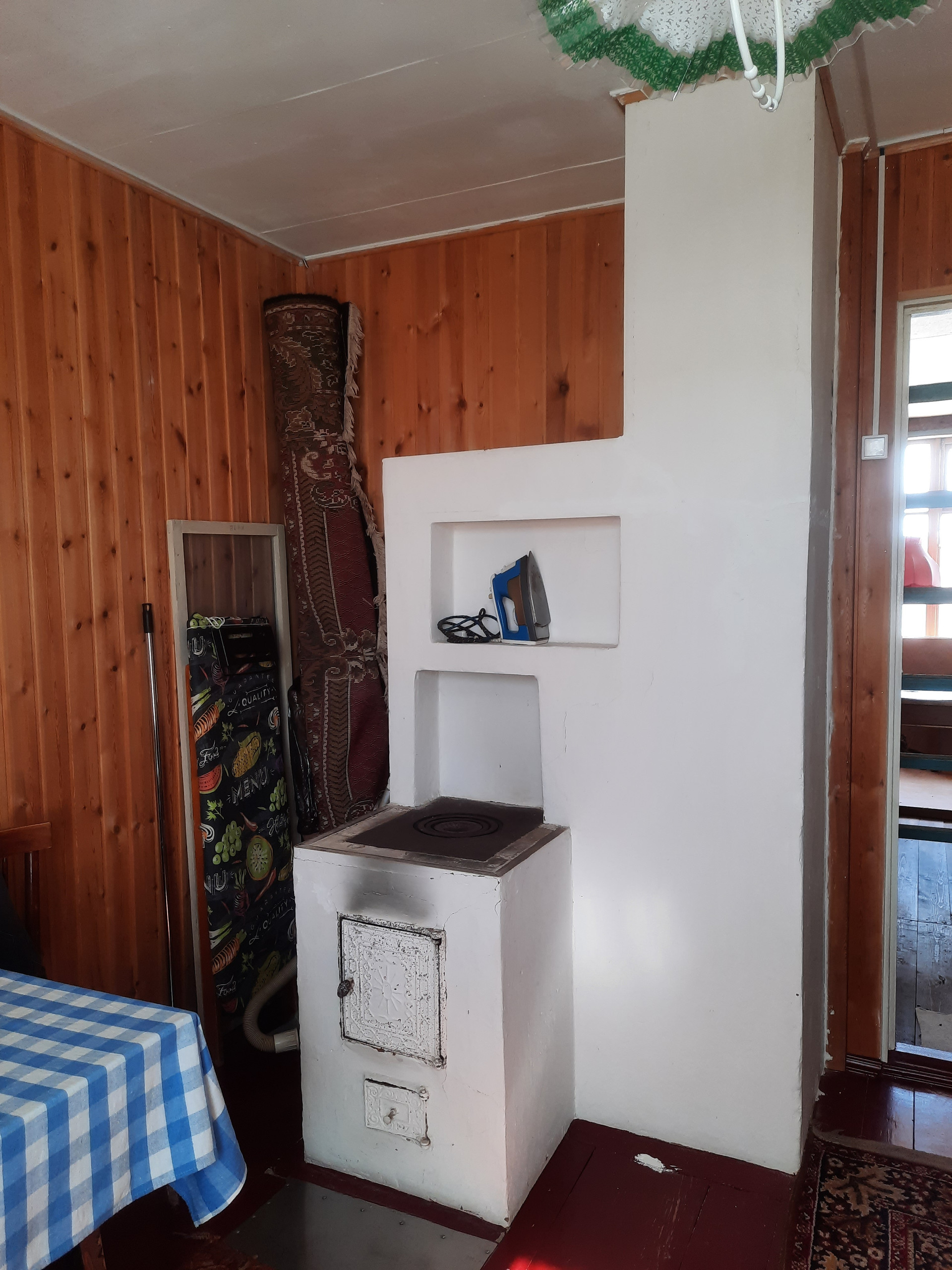 На первом этаже: терраса, большая кухня с голландской печкой, на которой можно готовить еду, две комнаты.