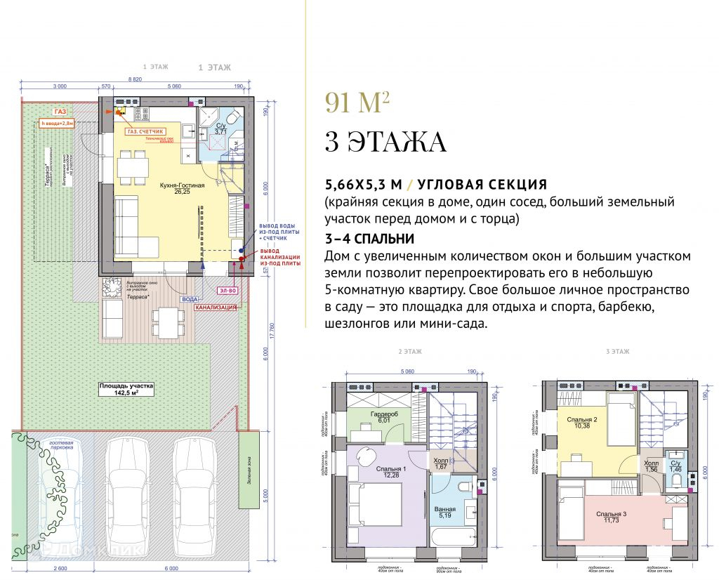 Готовый дом, есть варианты с отделкой предчистовой и под ключ.Кухня-гостиная 26, 2 м2 Спальня 1 - 12, 2 м2 Спальня 2 -10, 4 м2 Спальня 3 -11, 7 м2 С.У. - 5, 2 м2 и 1, 5 м2