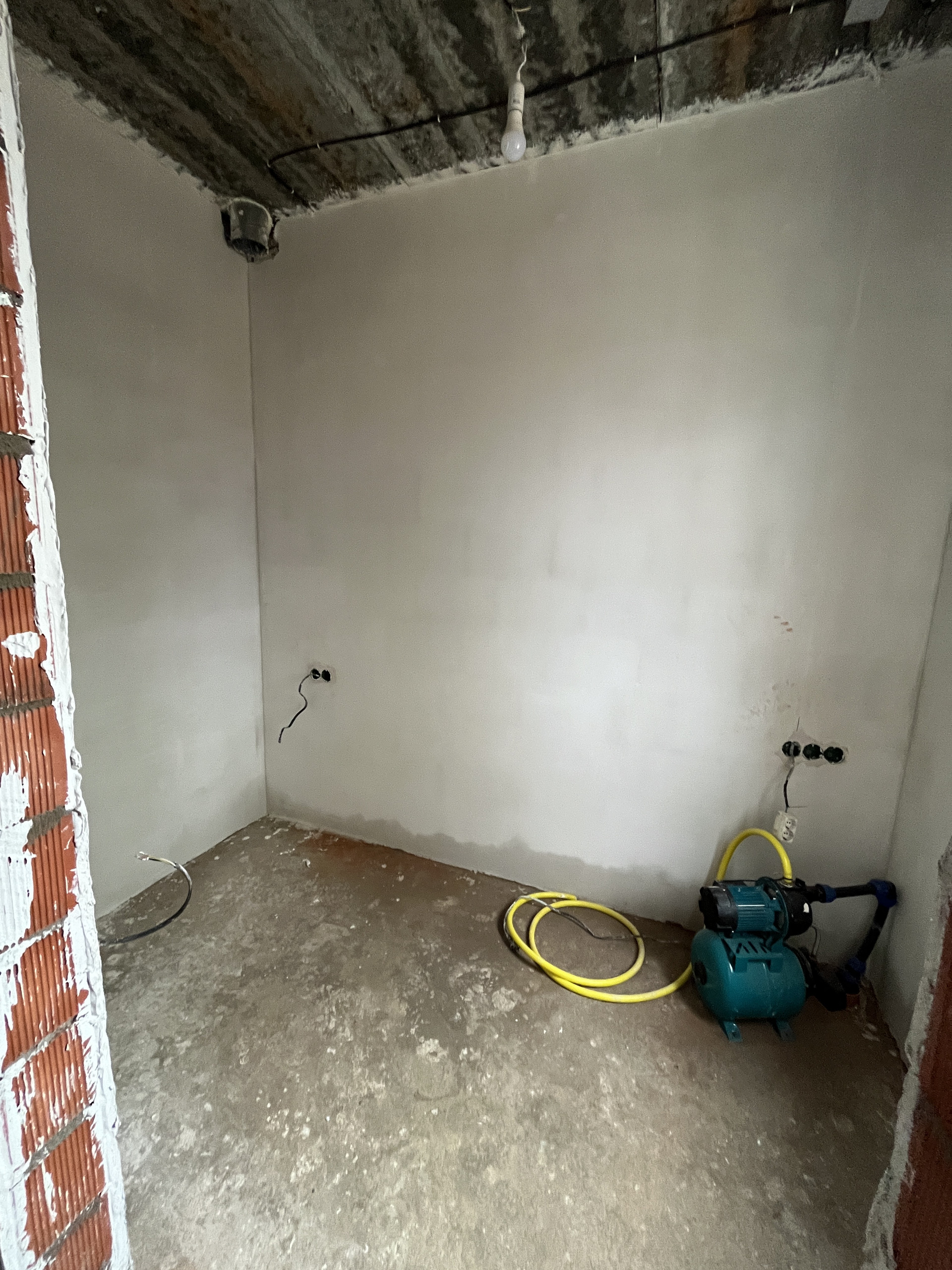 Внутри штукатурка Гипсовая КНАУФ М-75, цементная Вебер ТТ40.Все сделано идеально ровно!