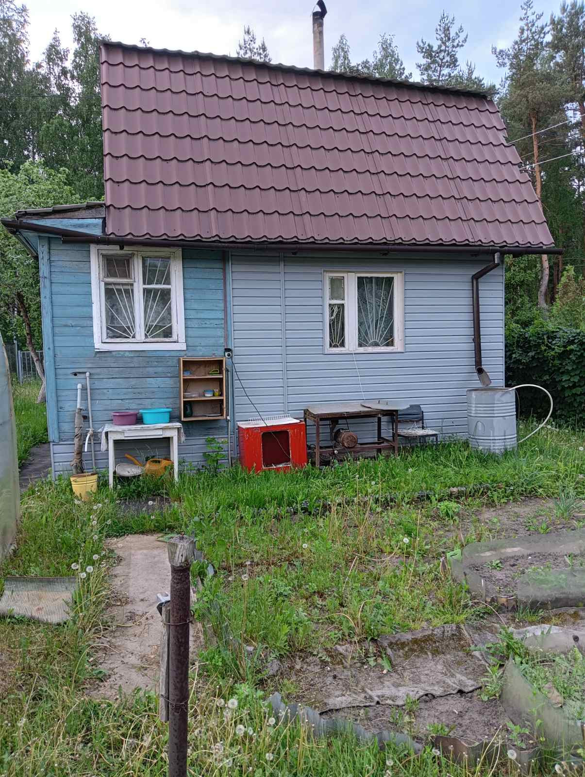 Деревянная беседка, мастерская и дровяной сарай обшиты металлом. По всему участку проложен водопровод для полива. Одна теплица. Из посадок: яблони, слива, тернослив, ягодные кустарники обработаны (смородина черная, красная, белая; крыжовник), многолетний лук и высажен чеснок; виноград Изабелла- обильный урожай. Посажены овощи. Есть парковочное место на участке и напротив участка подготовленная площадка. Очень хорошие соседи.