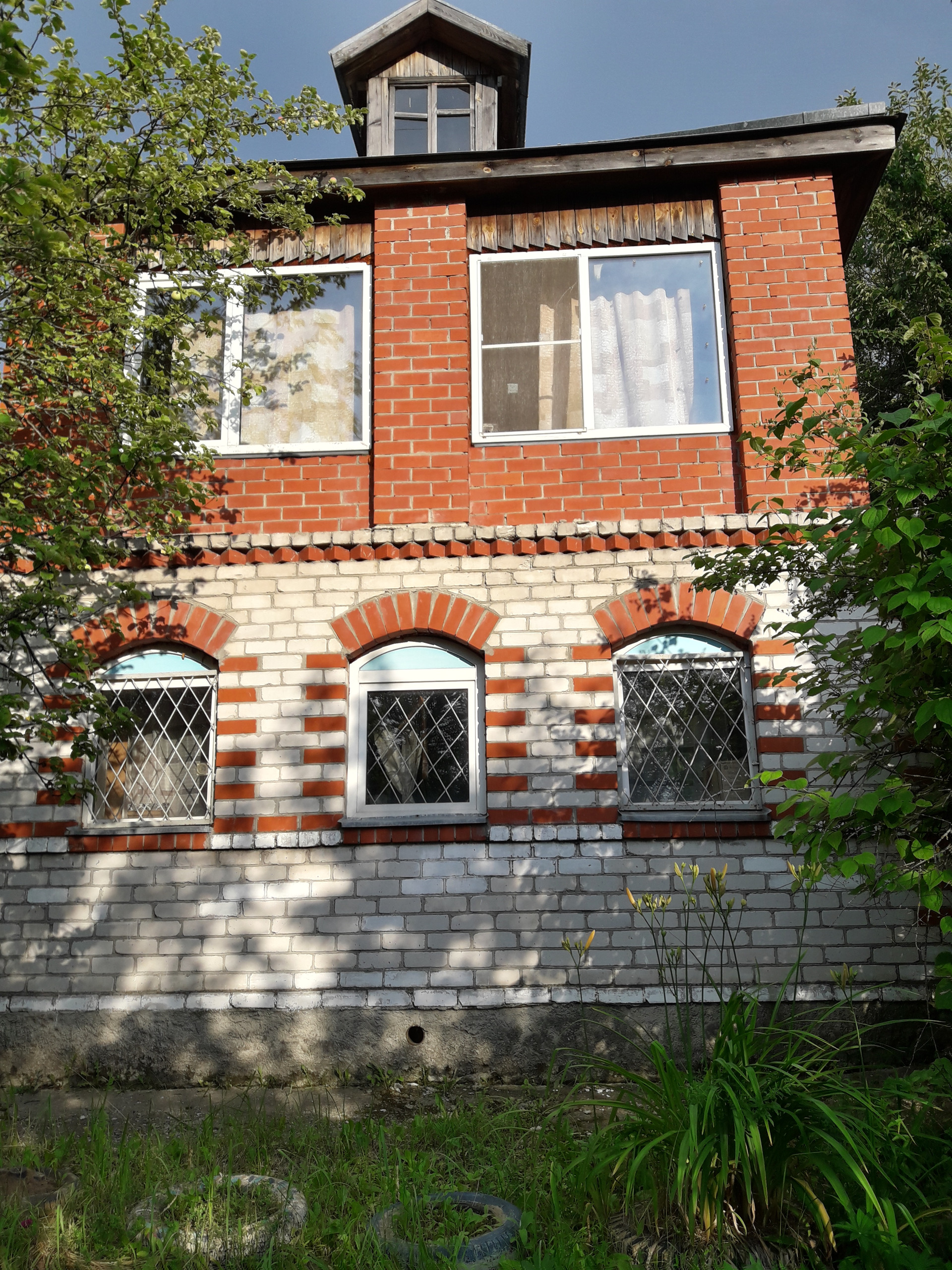Капитальный дом (бетонный фундамент), кирпичный гараж, есть скважина. Дому требуется ремонт (8 лет никто не жил). Газ и водоснабжение рядом, после покупки возможно провести.