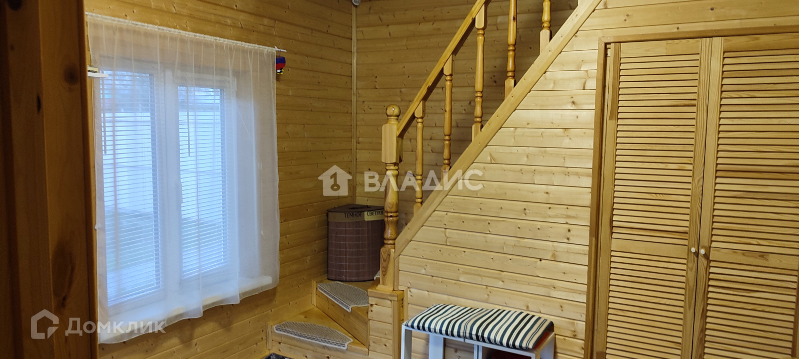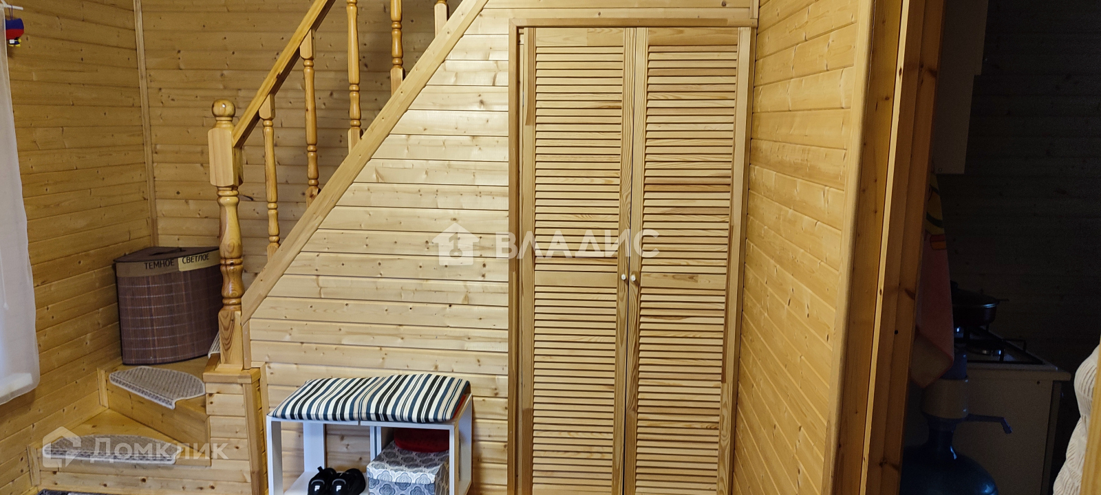 на второй этаж ведет деревянная лестница,под ней сделан вместительный гардероб.где Вы сможете разместить свои вещи, свет на ней с датчиком движения,что поможет в темное время суток безопасно передвигаться по ней. На ступенях противоскользящие коврики для вашей безопасности.