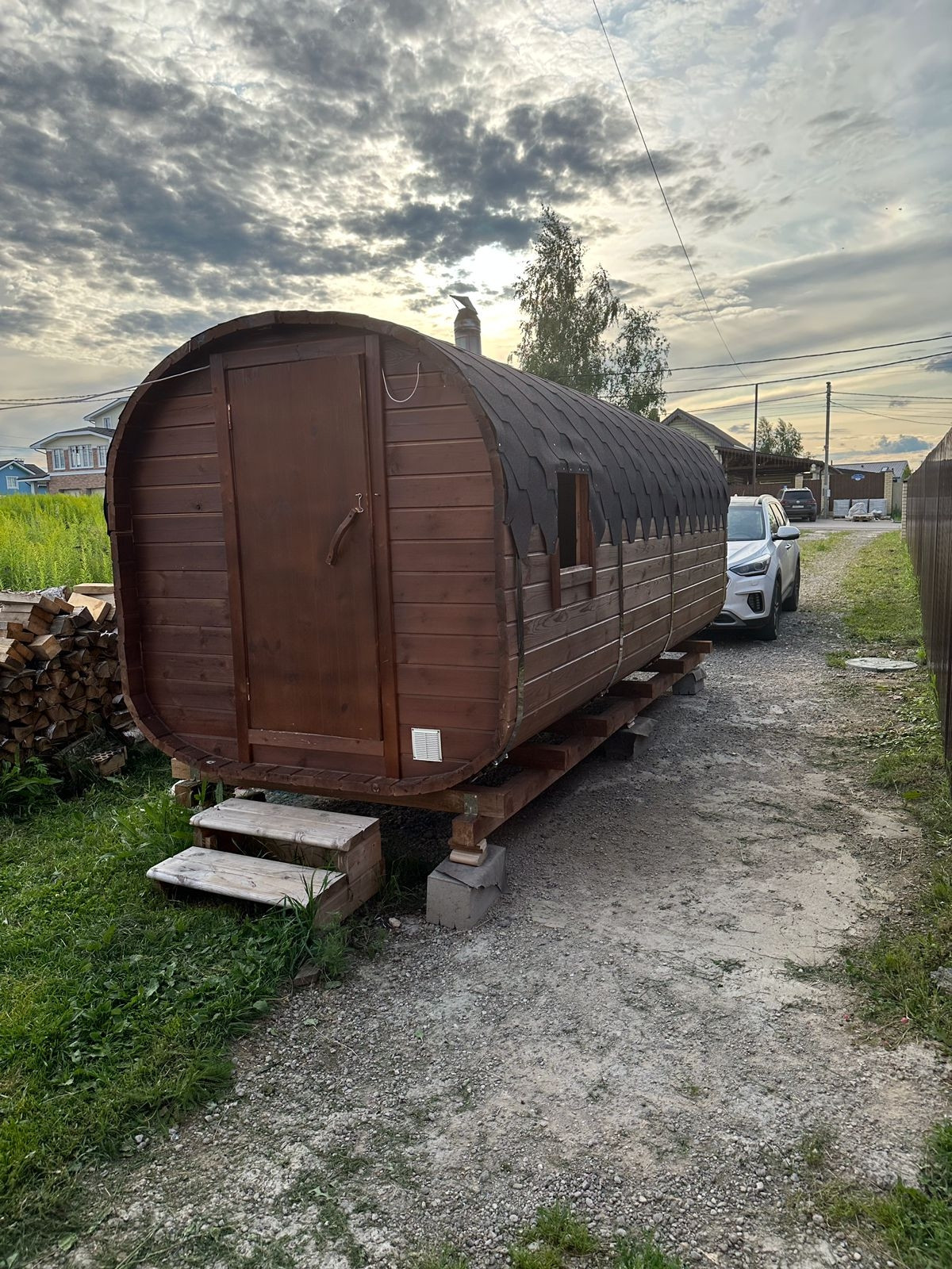 К основному строению имеются 2 пристроя, которые можно использовать как кладовые. В один из двух пристроев подведены все коммуникации (изначально планировали под сауну, можно в дальнейшем также рассмотреть и как такой вариант). На участке имеется бочка-баня, которая также входит в стоимость данного предложения
