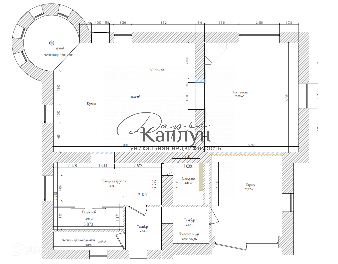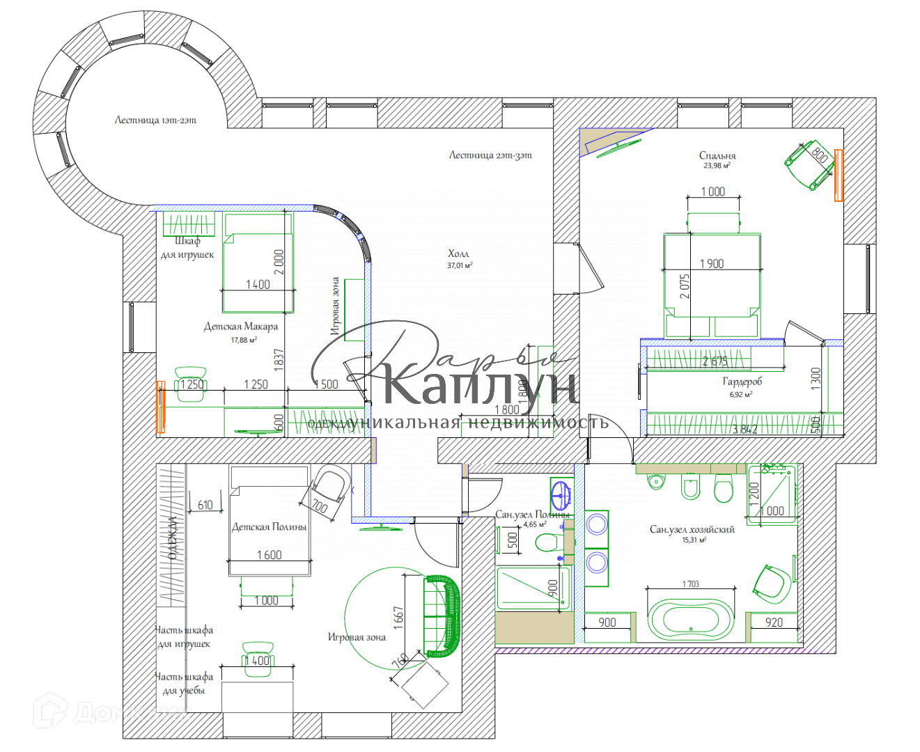 Цоколь: котельная, постирочная, спортзал, большая гардеробная;