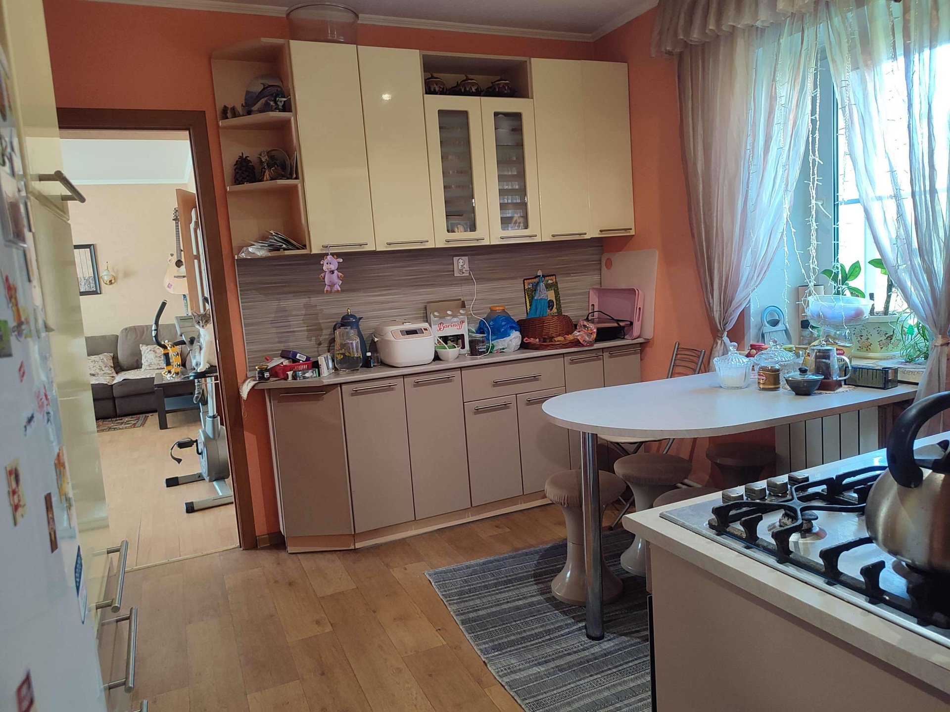 В доме сделан косметический ремонт, ламинат, новая встроенная кухня с посудомоечной машиной, пластиковые окна, с/у в современной плитке, пол с подогревом.