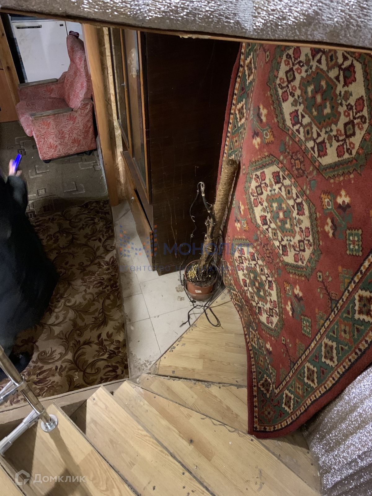 Пол на втором этаже залит бетоном и устелен керамзитом. Далее линолеум, ламинат и плитка.